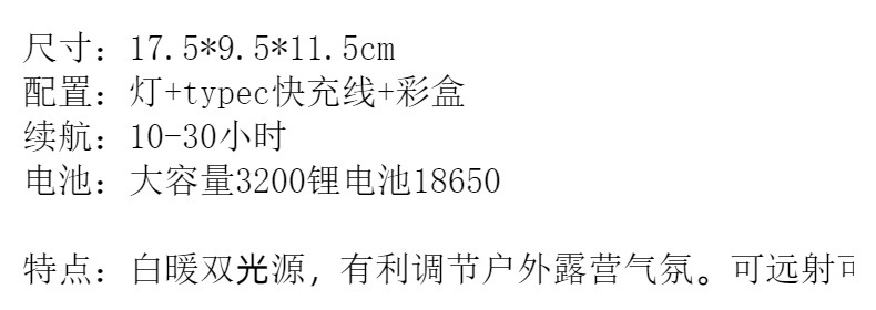 • 듀얼 광원 백색 + 따뜻한 빛 배터리 수명 10시간(우아한 녹색)