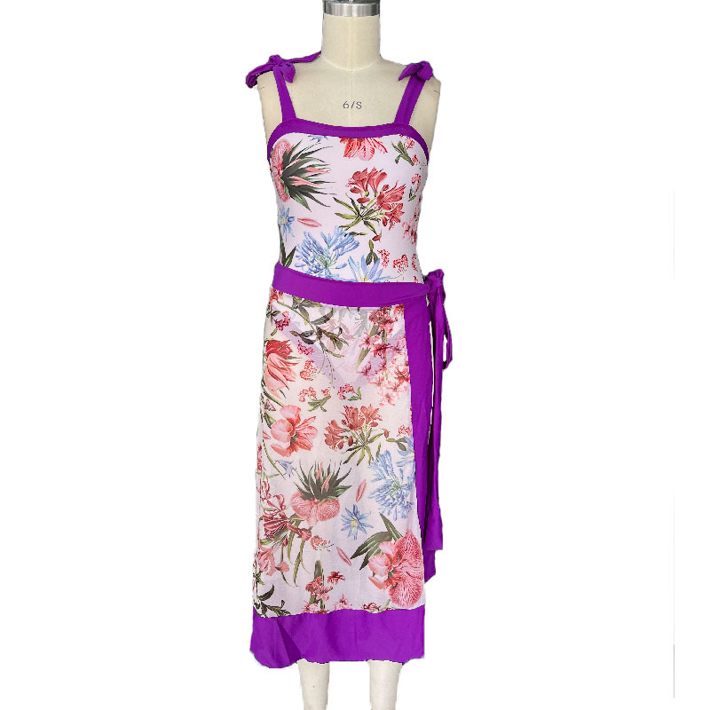 2023 유럽과 미국 패션 새로운 스타일 인쇄 보수적 인 살 덮음 슬리밍 메쉬 비치 스커트 여성용 원피스 투피스 수영복