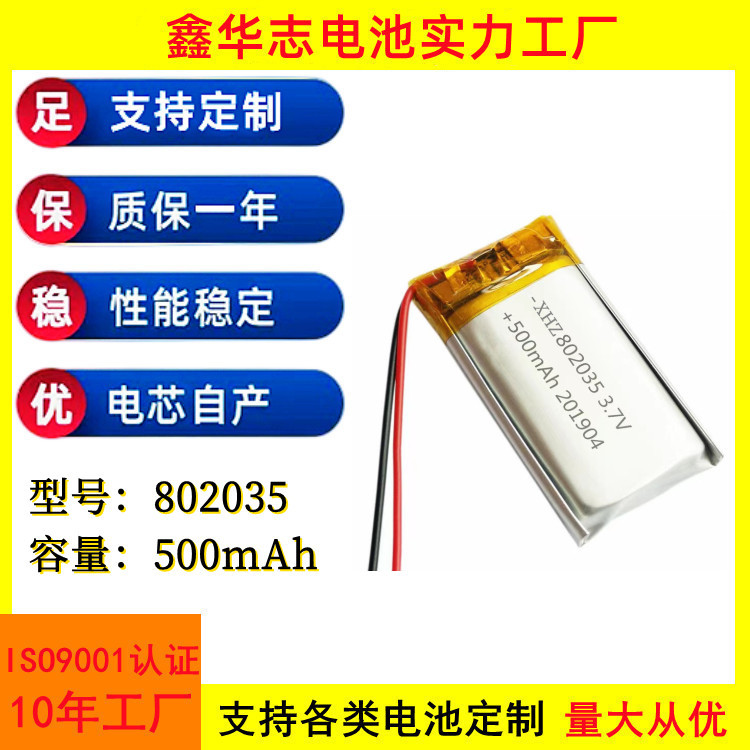 802035 폴리머 리튬 배터리 500mAh 산소 농도계 미용 기기 소독 램프 무선 마이크 배터리 3.7V