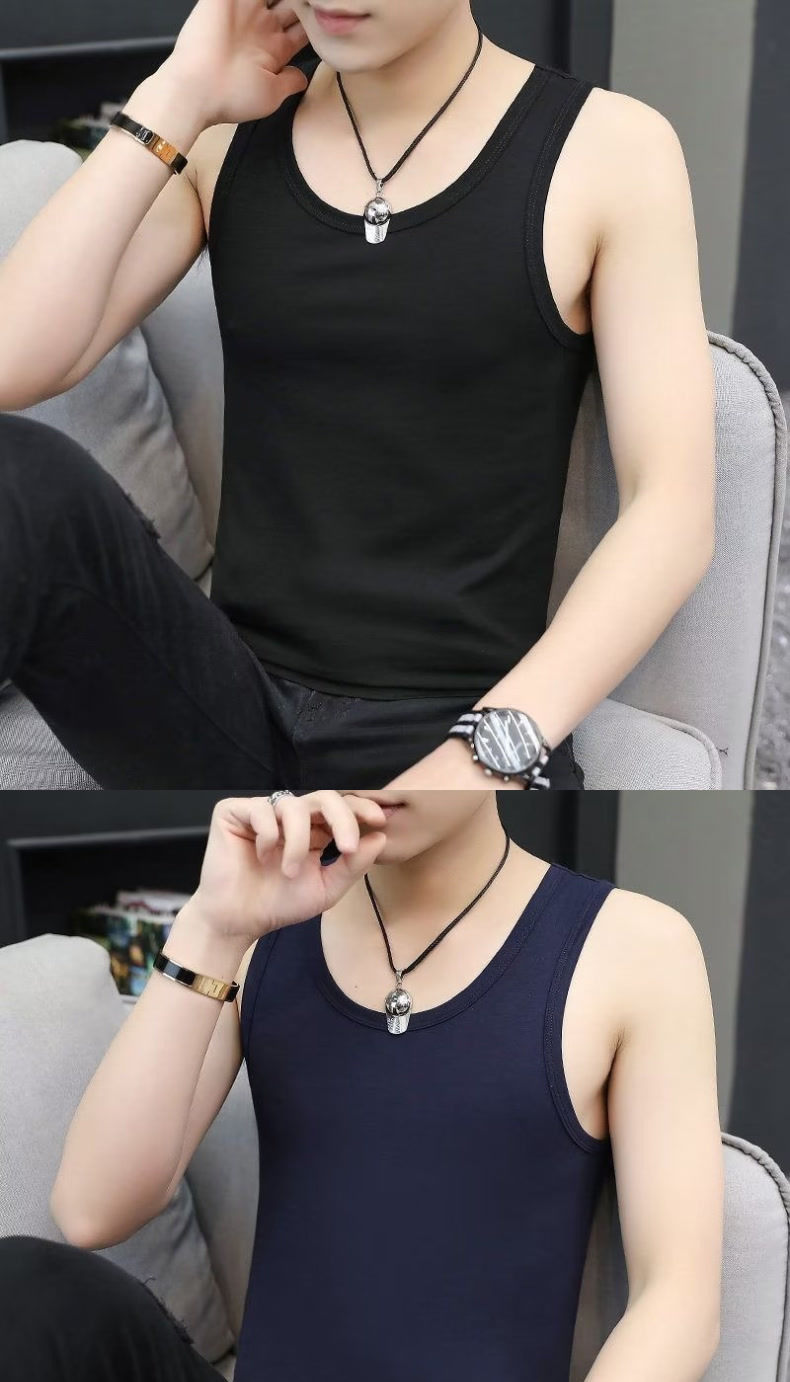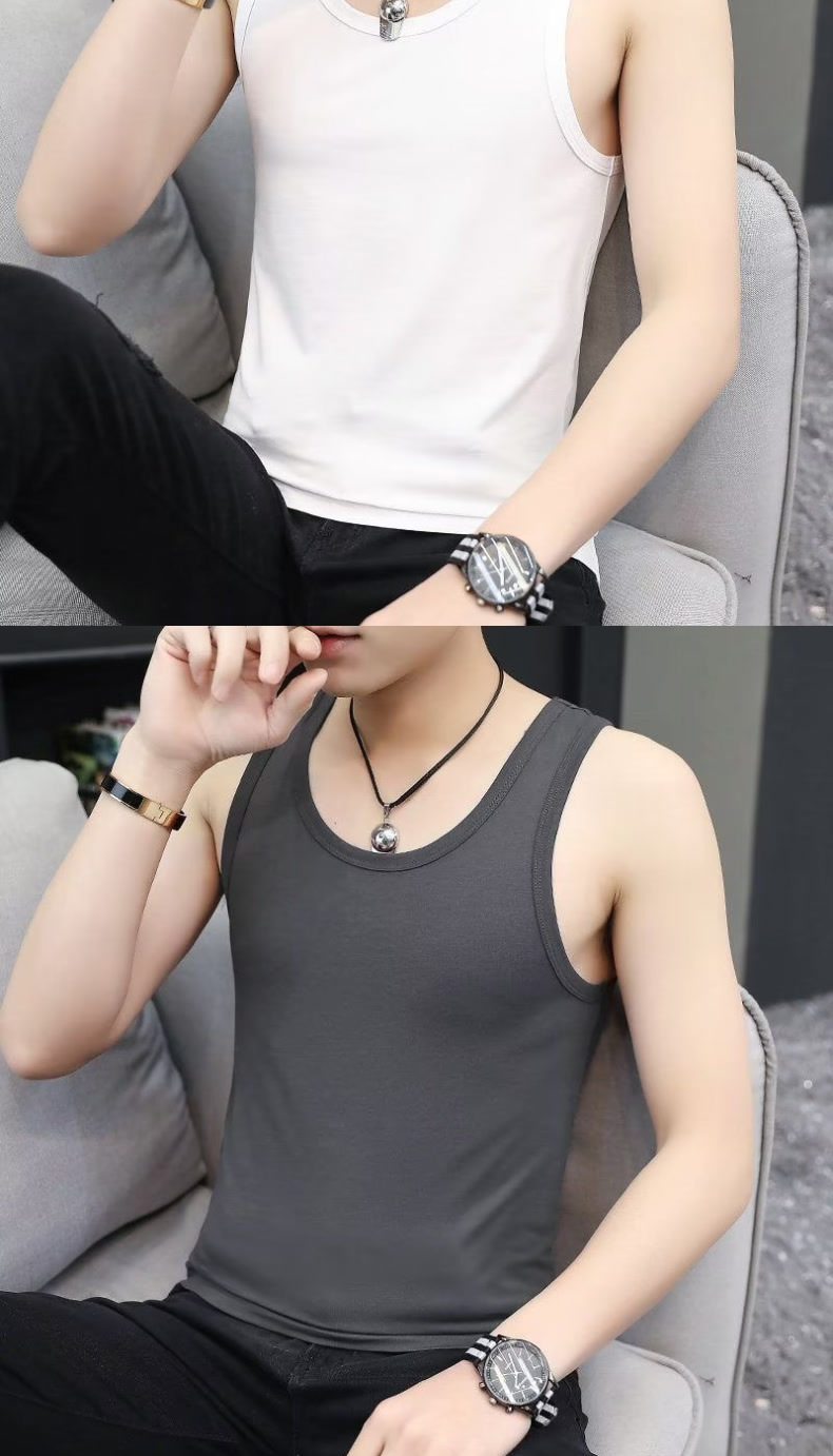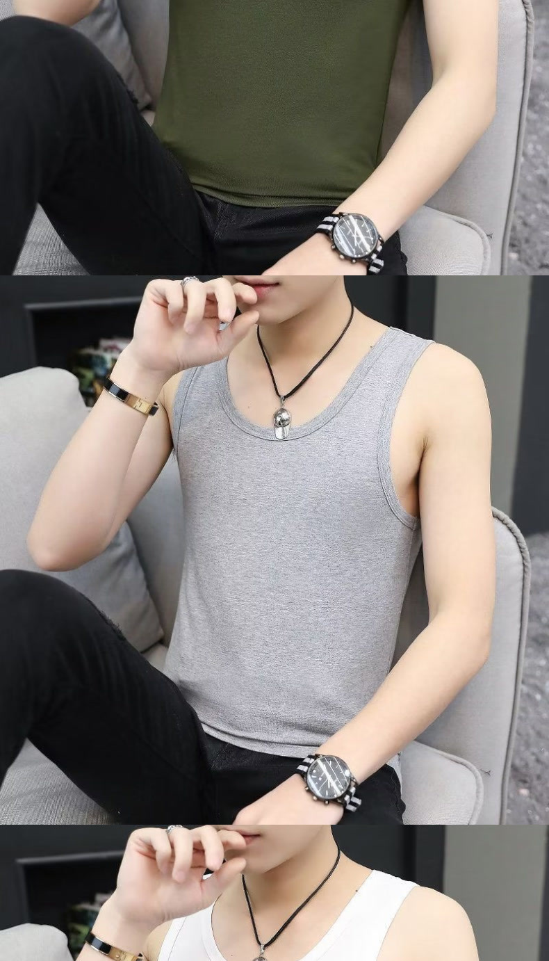 여름 남성용 스웨트 조끼 트렌디 한 우아한 하라주쿠 트렌디 한 남성용 크루넥 새로운 청소년 인기 단색 I 자형 조끼스토어 가기