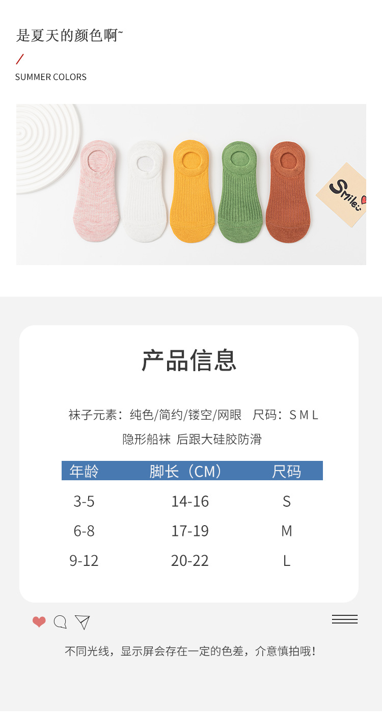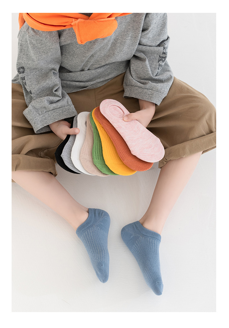 여름 새로운 어린이 단색 보트 양말 미끄럼 방지 실리콘 아기 보이지 않는 양말 중형 및 대형 어린이 다목적 캔디 컬러 양말면스토어 가기
