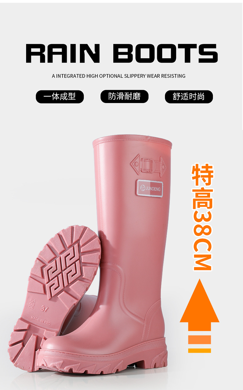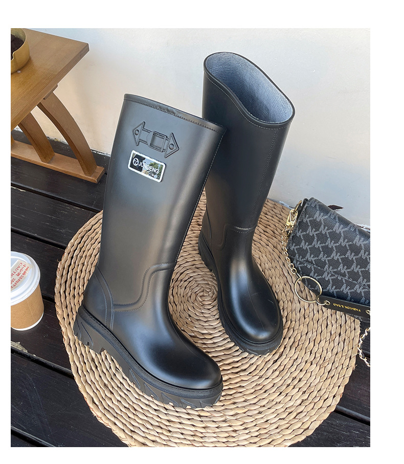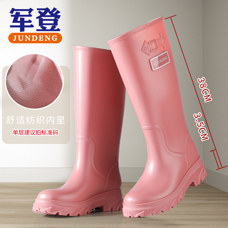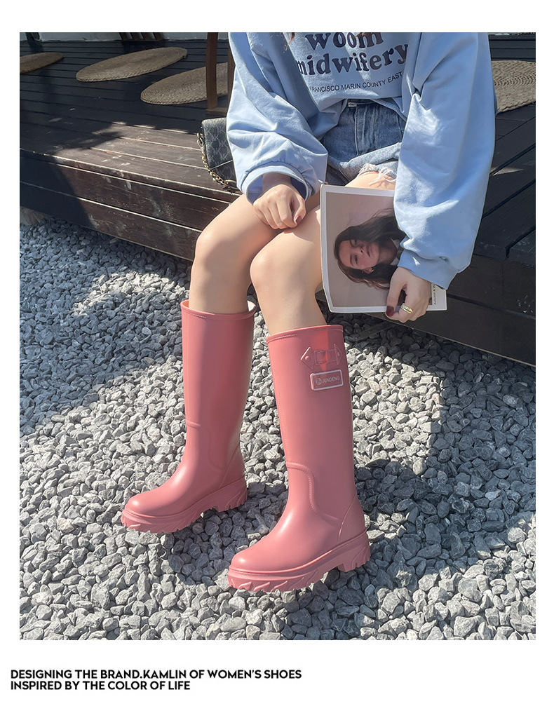 새로운 물 신발 여성용 높은 고무 신발 패션 레인 슈즈 미끄럼 방지 방수 신발 편안한 롱 워터 부츠 모든 매치 롱 워터 부츠
