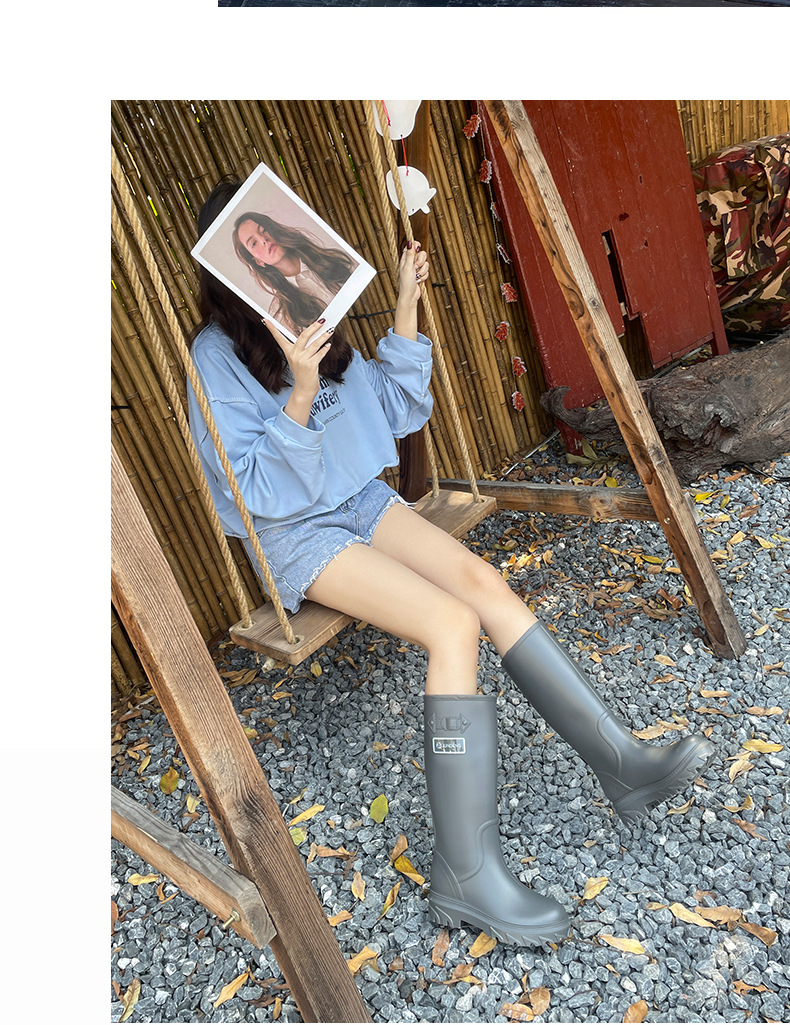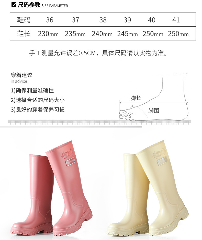 새로운 물 신발 여성용 높은 고무 신발 패션 레인 슈즈 미끄럼 방지 방수 신발 편안한 롱 워터 부츠 모든 매치 롱 워터 부츠스토어 가기