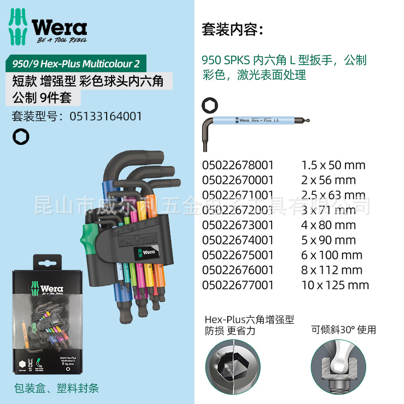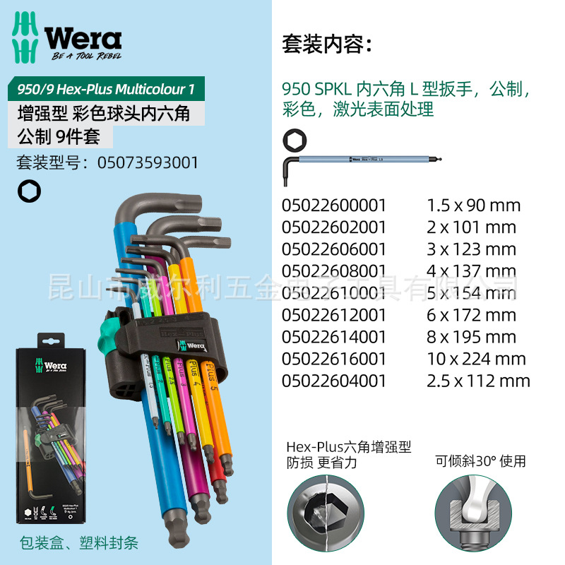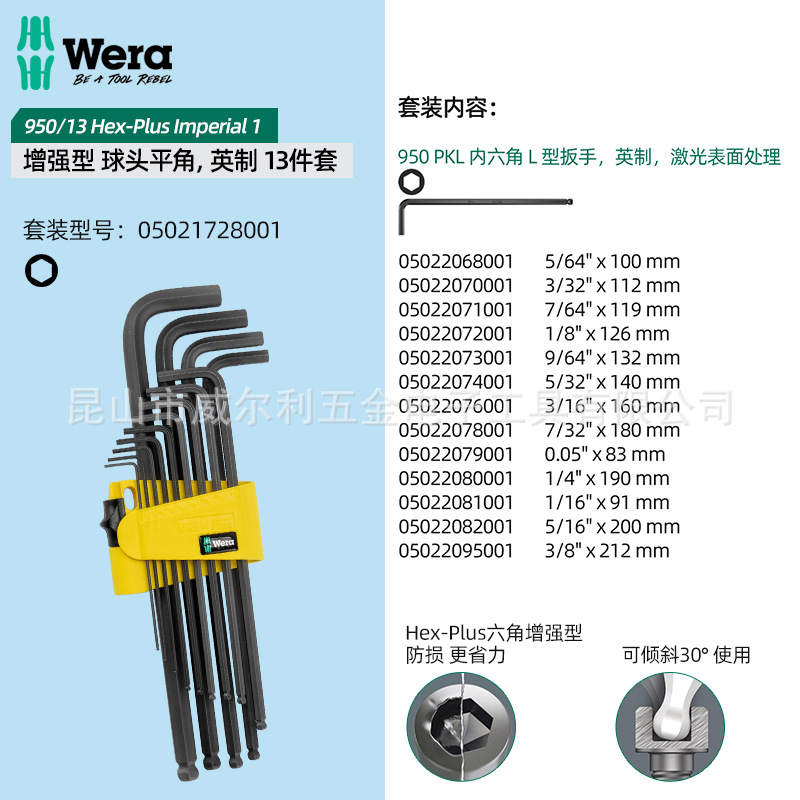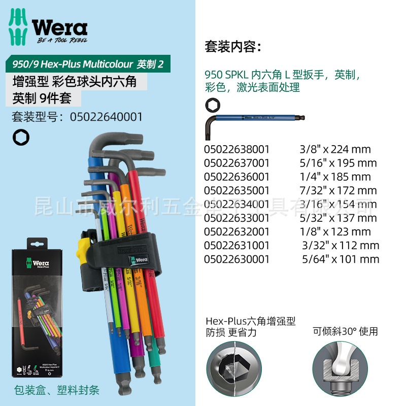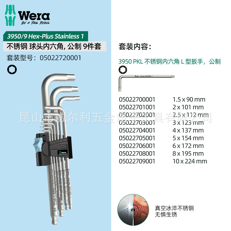 독일 Vera Wera950 SPKL 967 3950 긴 볼 헤드 육각형 스테인레스 스틸 렌치 L 형 인치스토어 가기