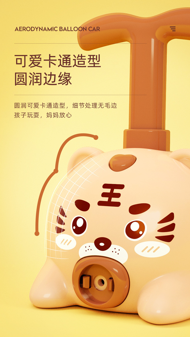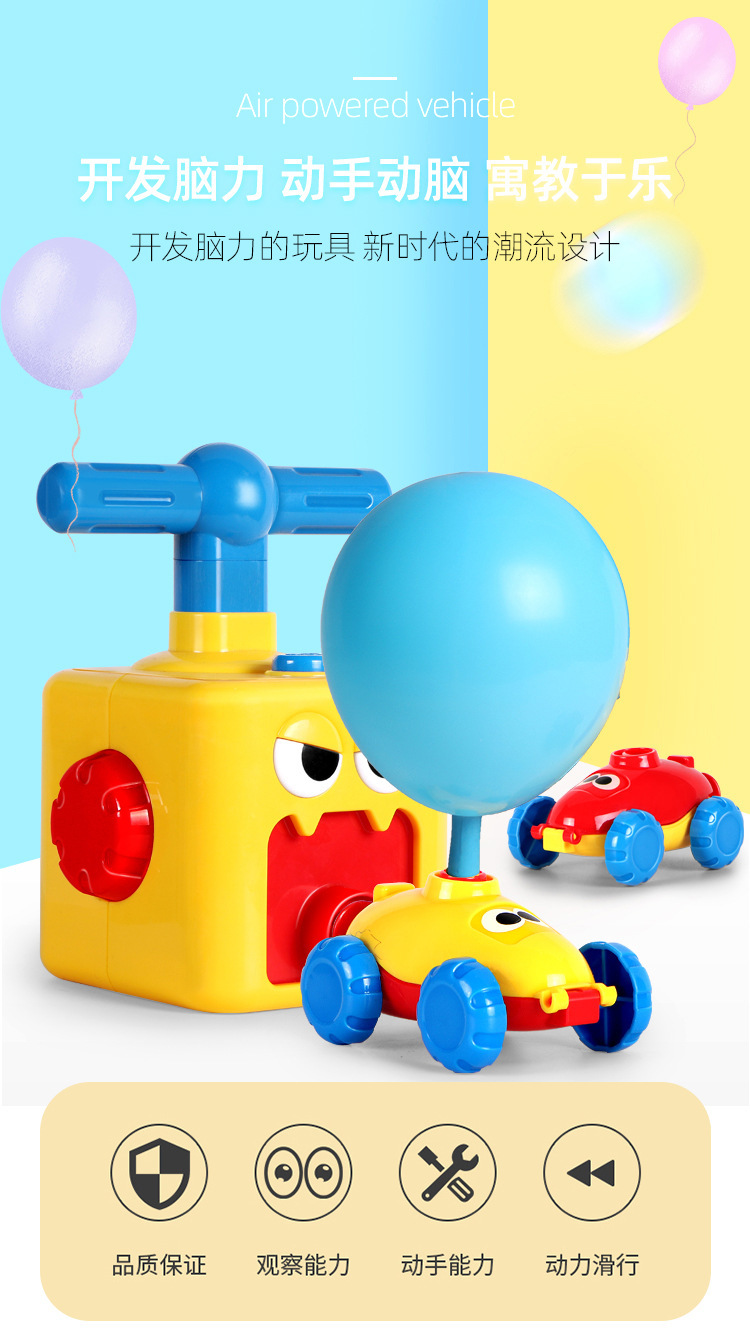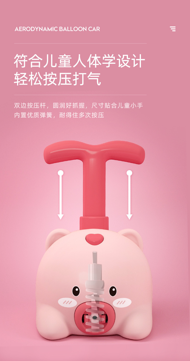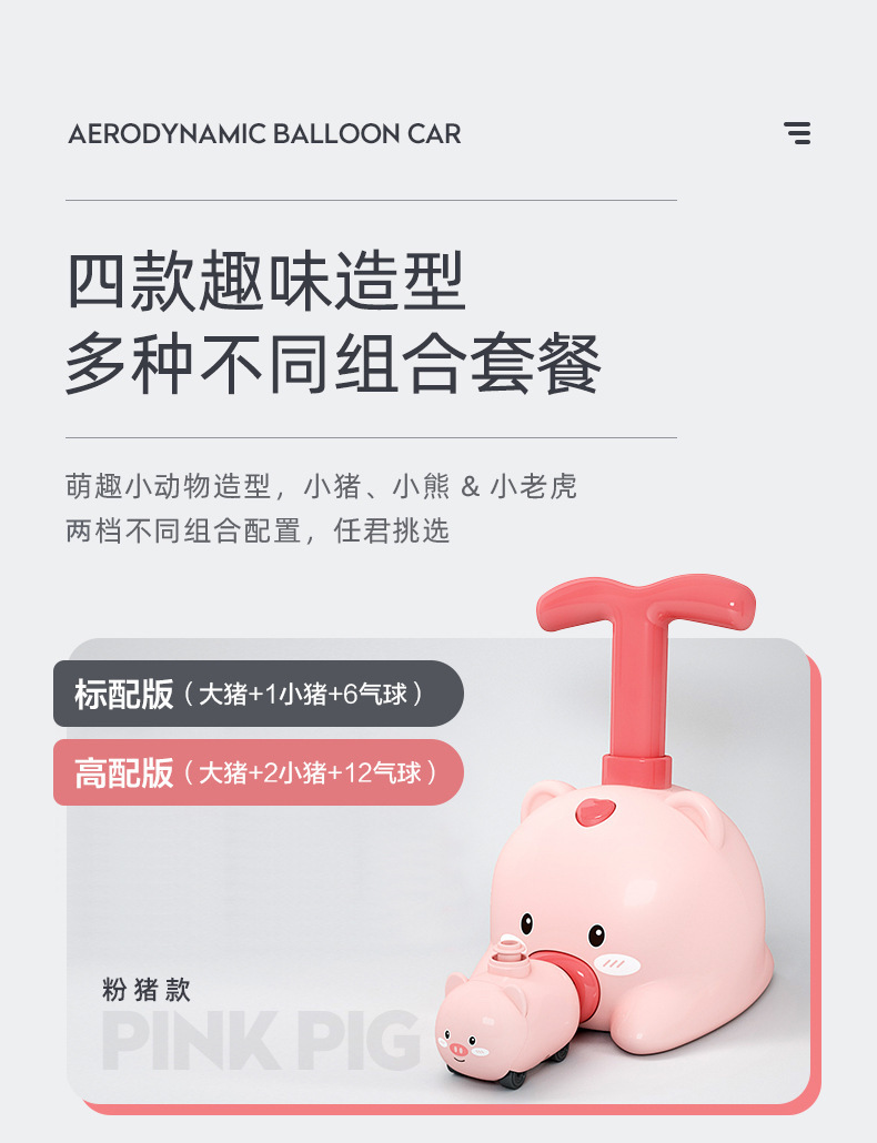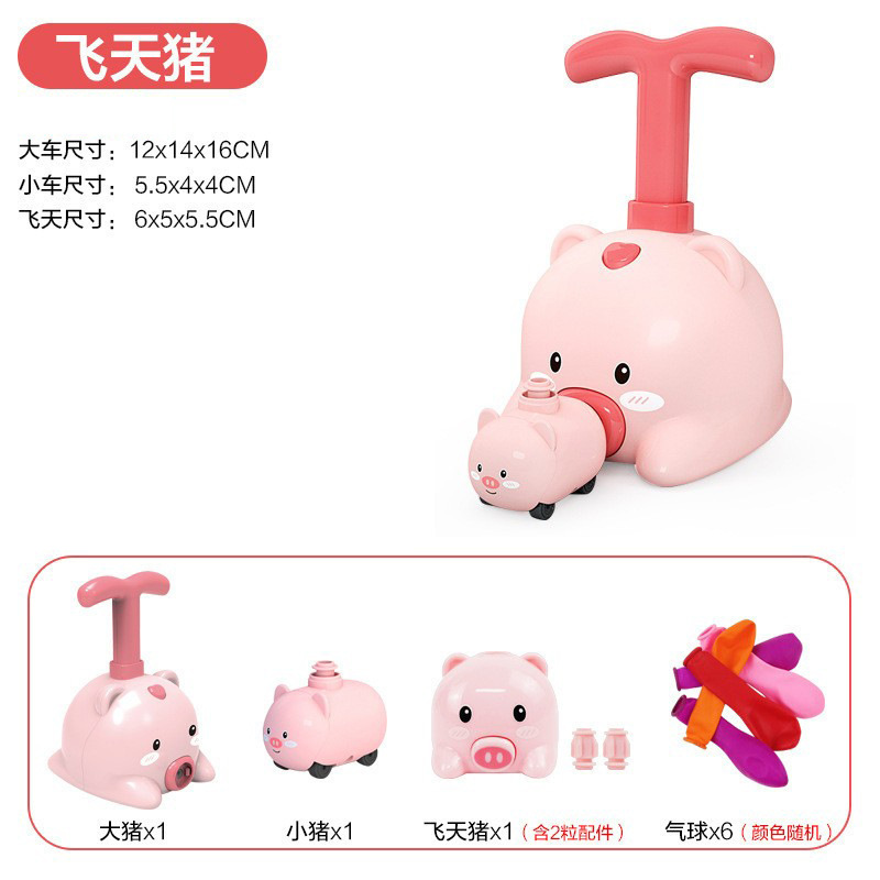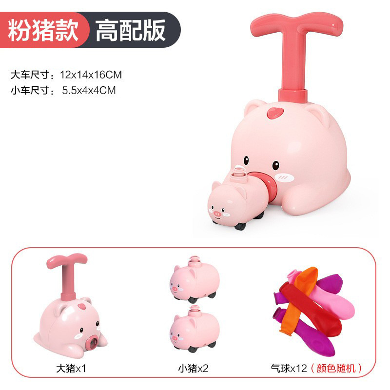 어린이용 관성 에어벌룬 파워카 장난감, 풍선을 누르면 움직이는 자동차, 돼지돌이날기 교육용 슬라이딩 자동차, 공기주입식스토어 가기
