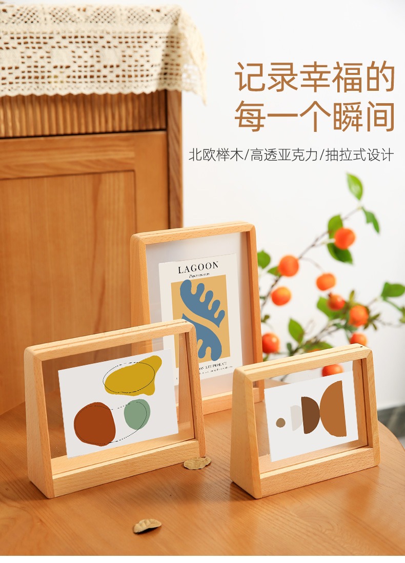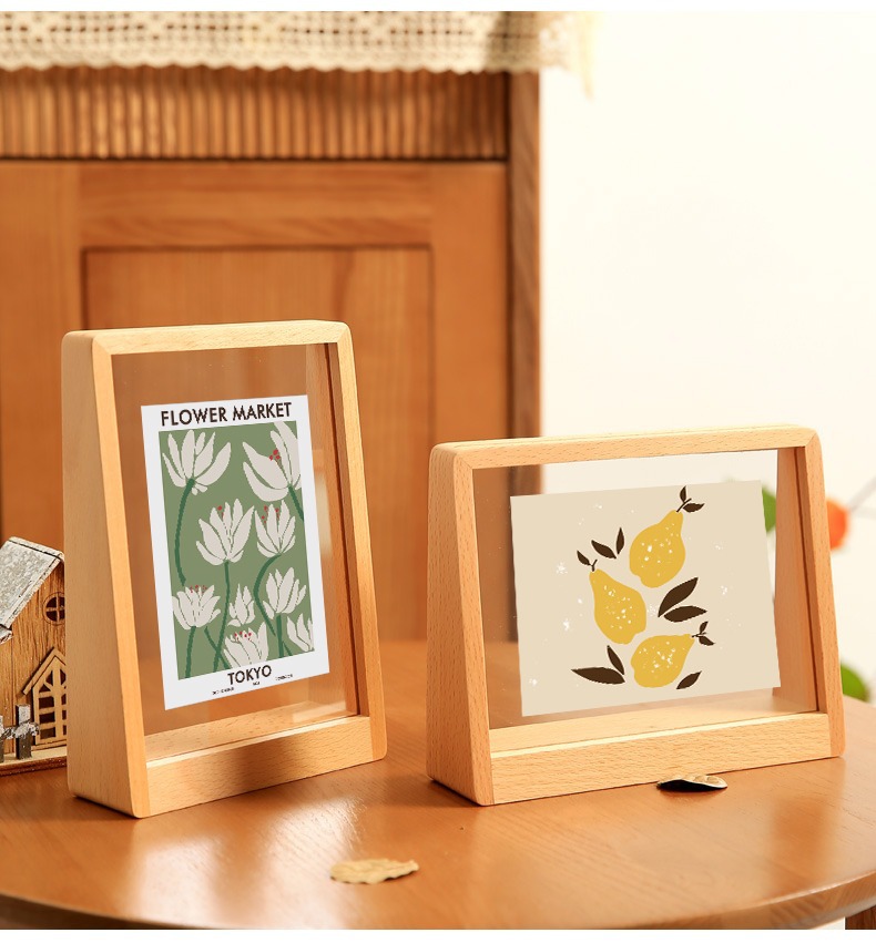 간단한 아크릴 단단한 나무 사진 프레임 세트 테이블 창조적 인 사다리꼴 6 인치 7 포스터 프레임 테이블 세트 작은 수채화 프레임 장착