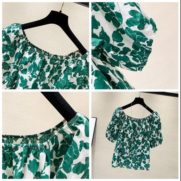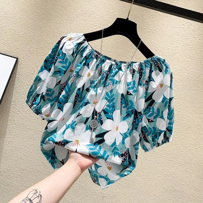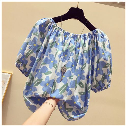 여성용 꽃 무늬 오프 넥 반팔 티셔츠 탑 2023 여성용 여름 느슨한 틈새 쉬폰 셔츠 세련된 서양식 작은 셔츠 패션