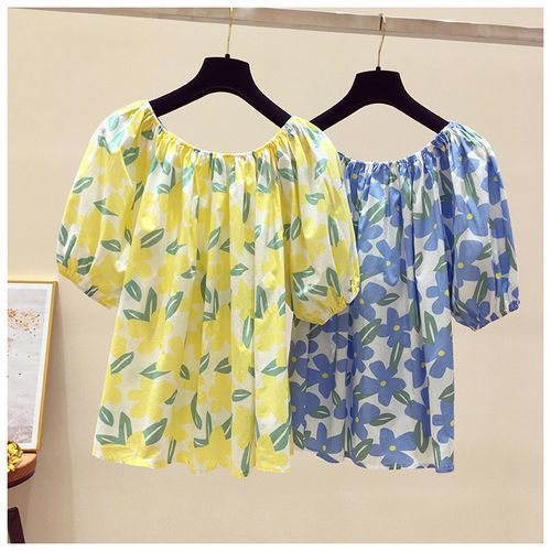 여성용 꽃 무늬 오프 넥 반팔 티셔츠 탑 2023 여성용 여름 느슨한 틈새 쉬폰 셔츠 세련된 서양식 작은 셔츠 패션스토어 가기