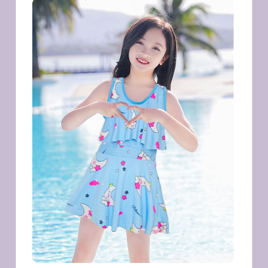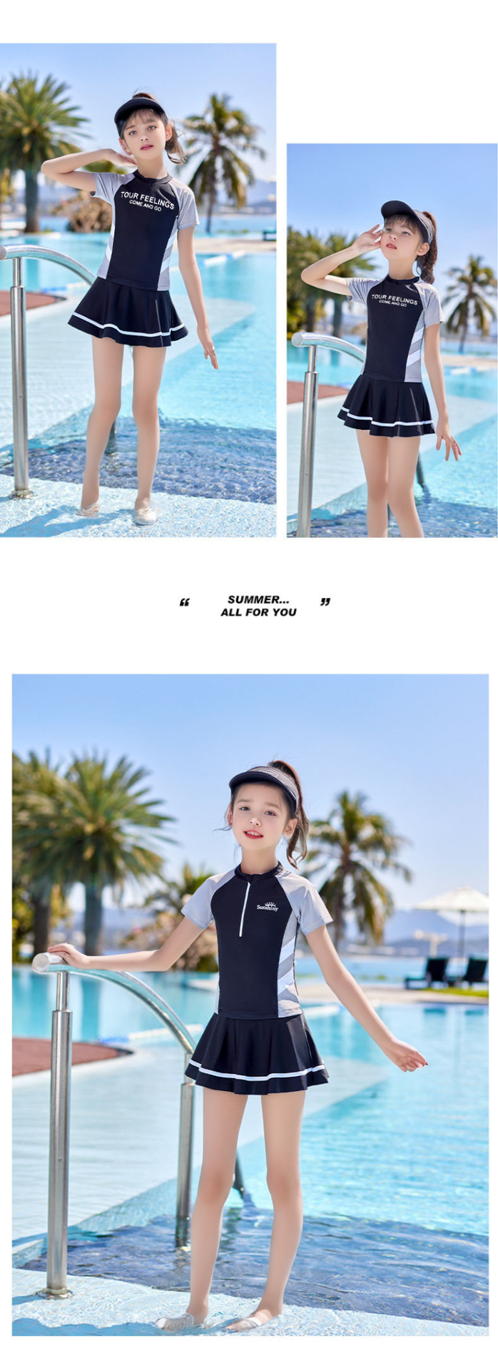 어린이 수영복 소녀 2024 새 여아 스타일 분할 스커트 수영복 큰 어린이 온천 수영 세트스토어 가기