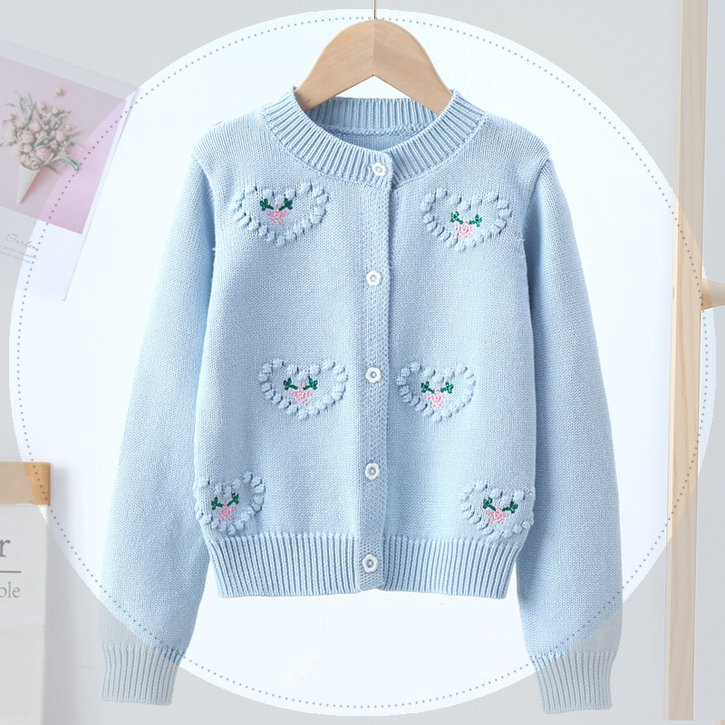 소녀의 봄과 가을 새로운 스타일 순면 카디건 스웨터 코트 사랑 어린 소녀 세련된 니트웨어 어린이 복장스토어 가기