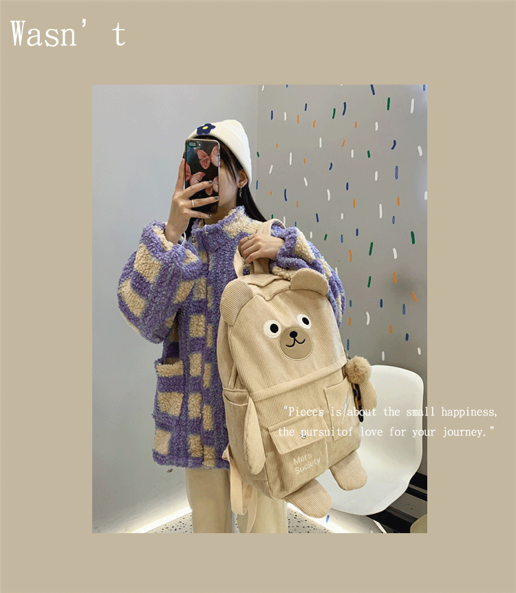 일본 책가방 여자의 인스 타 그램 스타일 중학생 배낭 귀여운 한국 코듀로이 배낭 고등학생 대용량스토어 가기