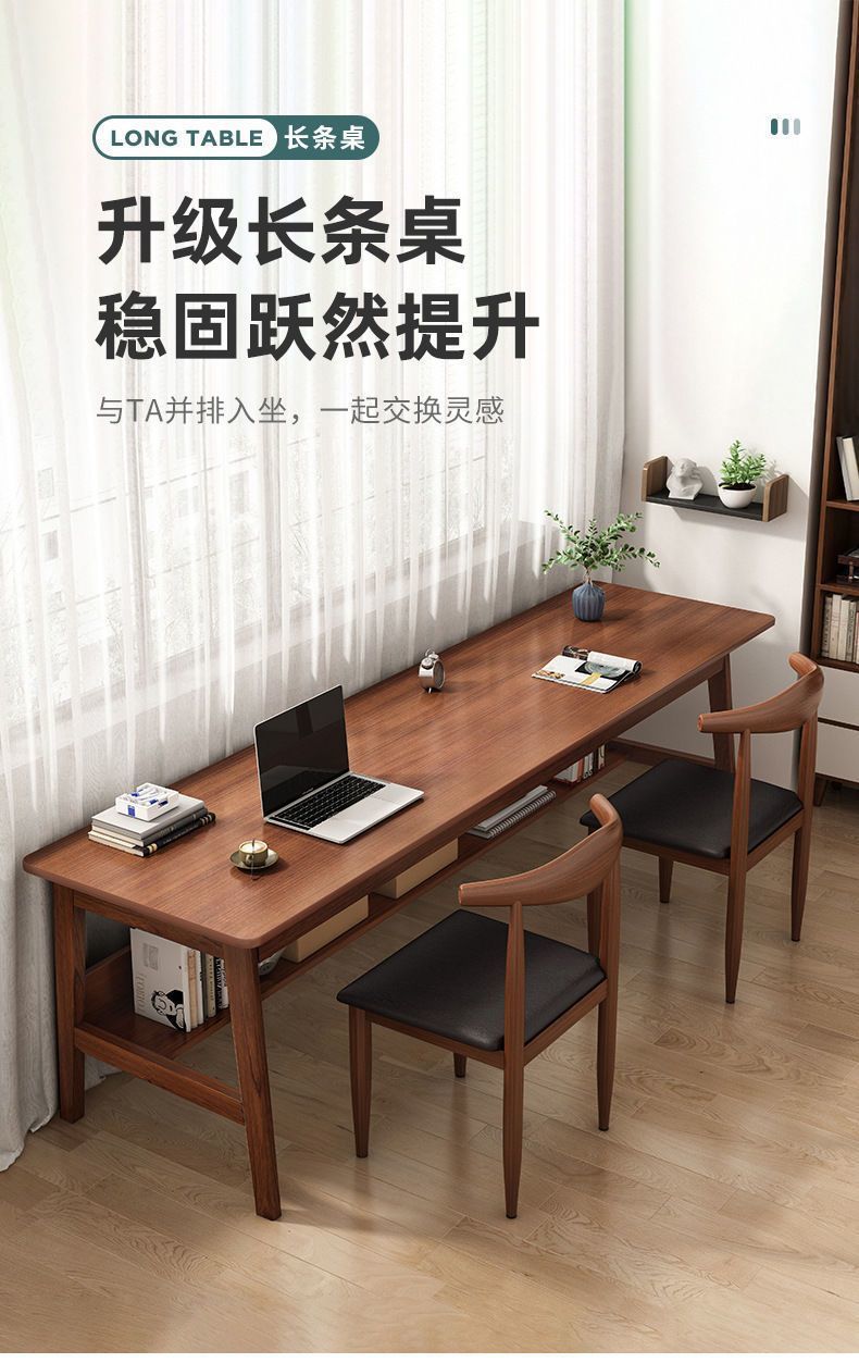 더블 데스크 긴 테이블 단단한 나무 다리 창 테이블 가정용 서랍 작업대가없는 책장 테이블이없는 간단한 테이블스토어 가기