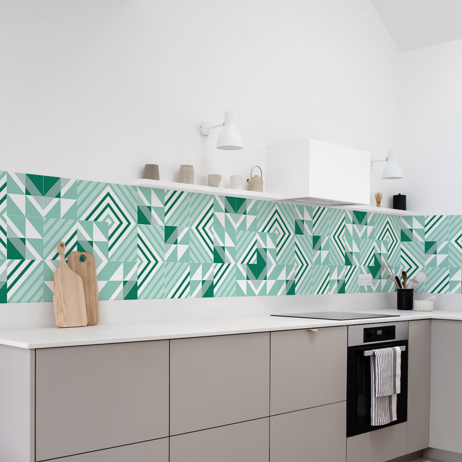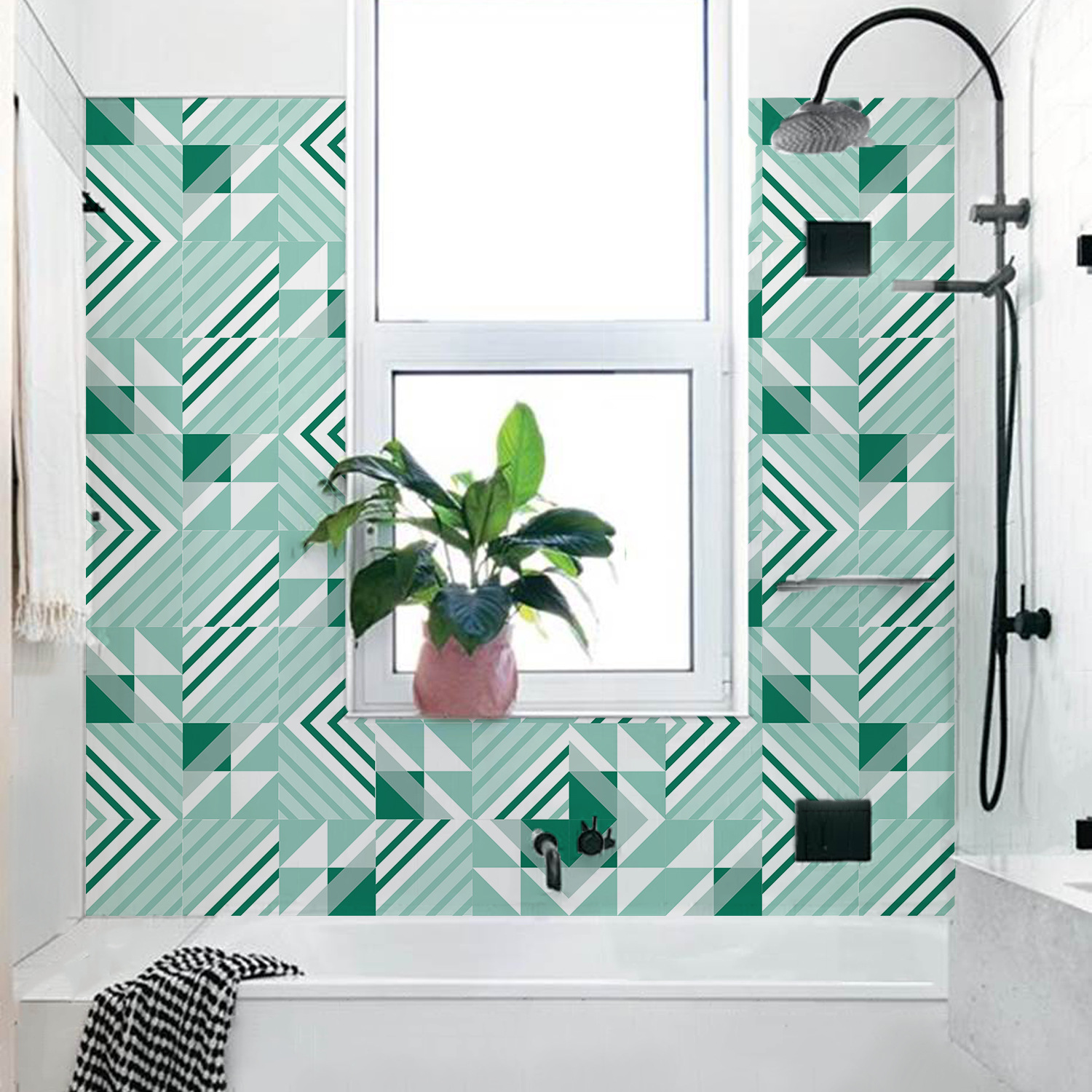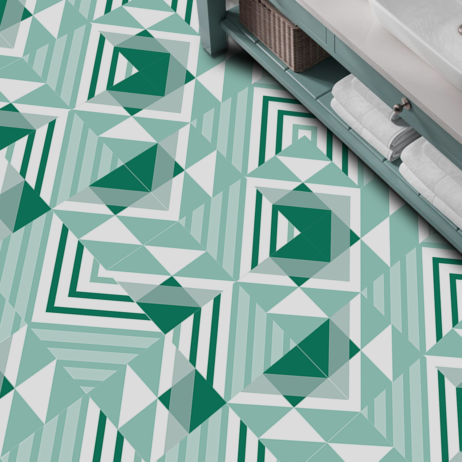 Funlife 기하학적 스티칭 녹색 두꺼운 타일 스티커 호텔 계단 내마모성 자체 포장 스티커 도매 KTS075