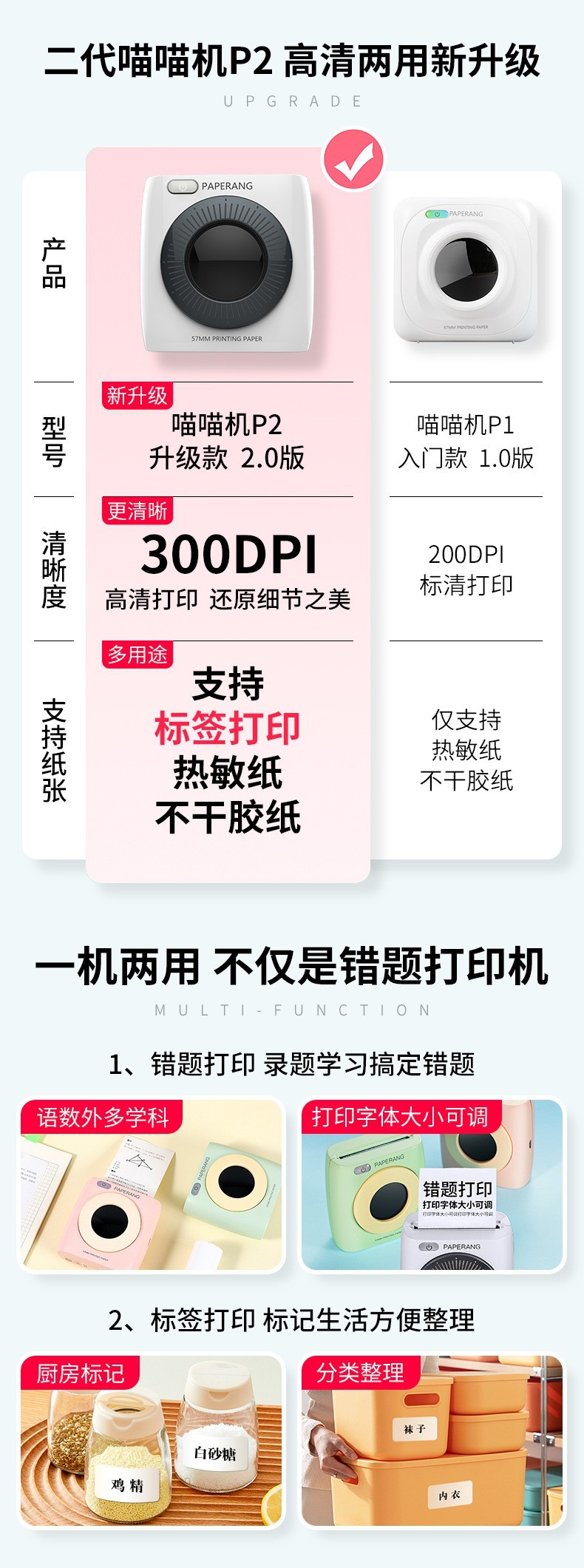 야옹 기계 2 세대 p2 미니 포켓 HD 블루투스 원격 잘못된 라벨 포켓 사진 열 프린터스토어 가기