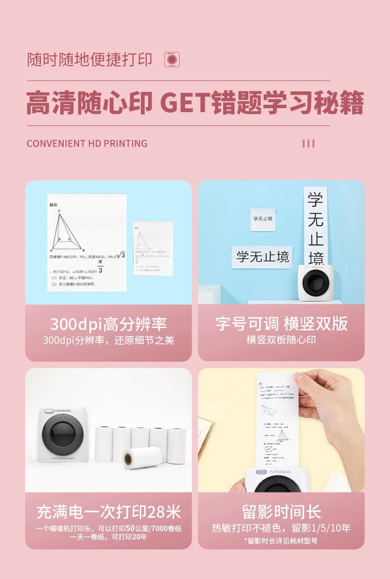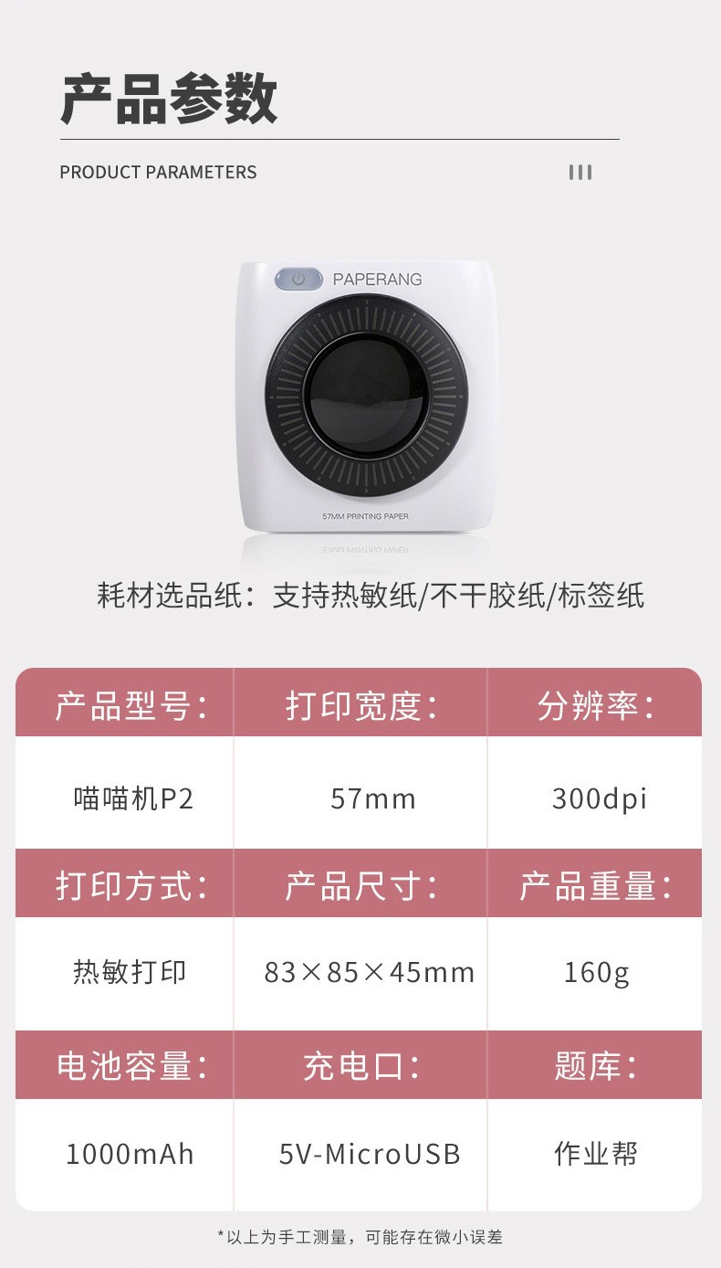 야옹 기계 2 세대 p2 미니 포켓 HD 블루투스 원격 잘못된 라벨 포켓 사진 열 프린터