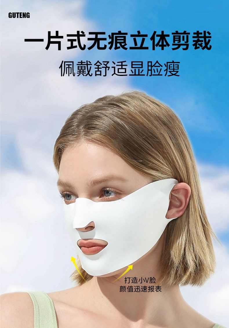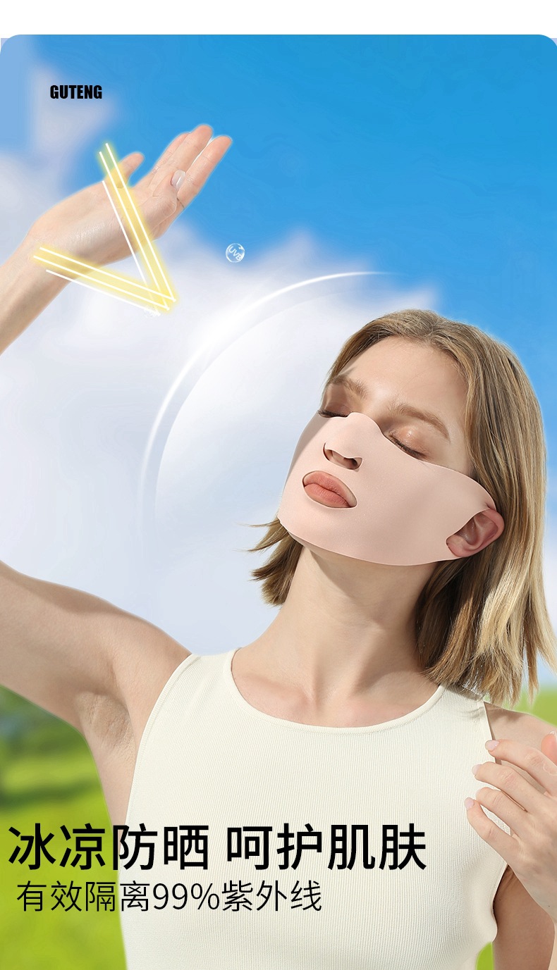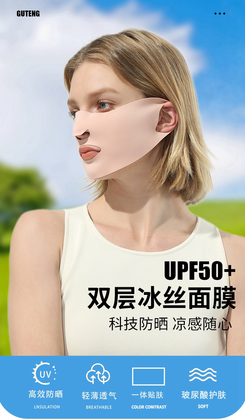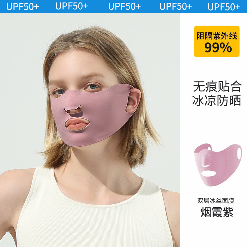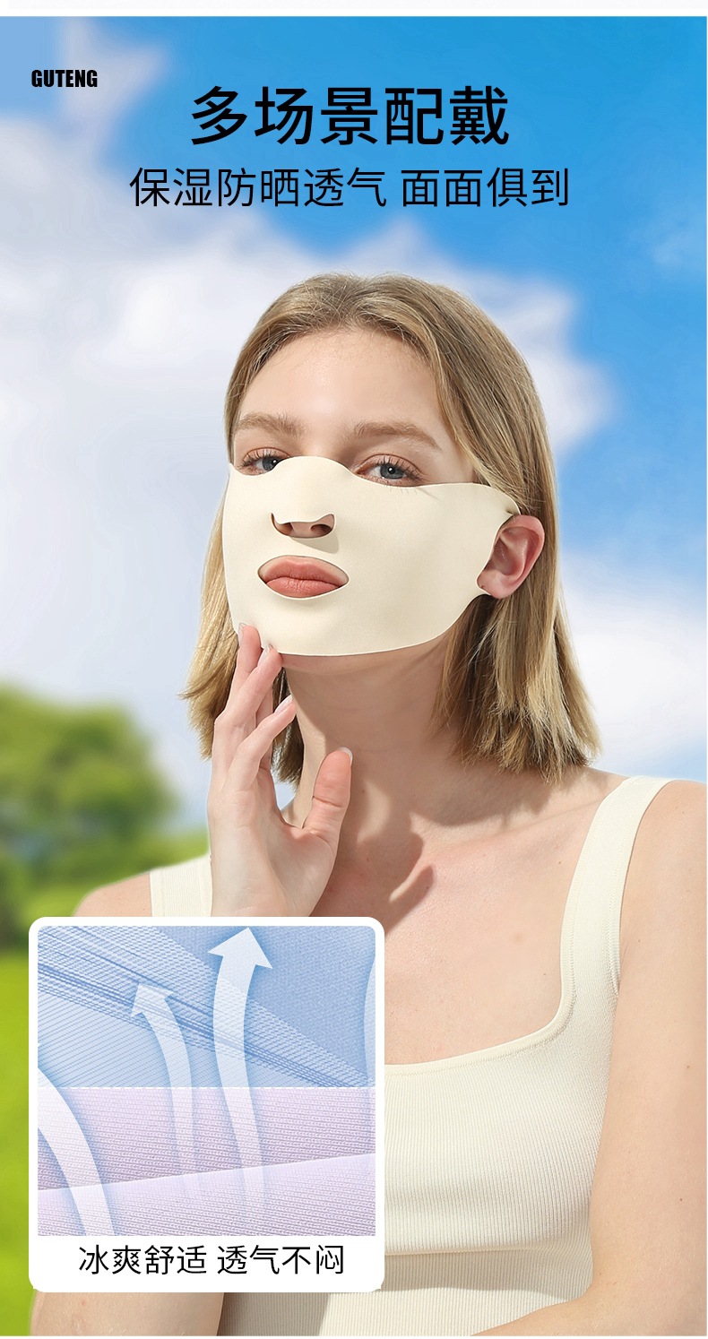 여름 아이스 실크 선스크린 마스크 UV 보호 여성의 보습 마스크 귀에 매달린 햇빛 통기성 원피스 마스크