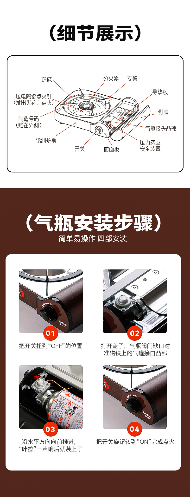 록 밸리 카드 스토브 높은 전력 4.1kw 높은 화재 휴대용 스토브 야외 바베큐 피크닉 가스 가스 가스 스토브 ZA-41