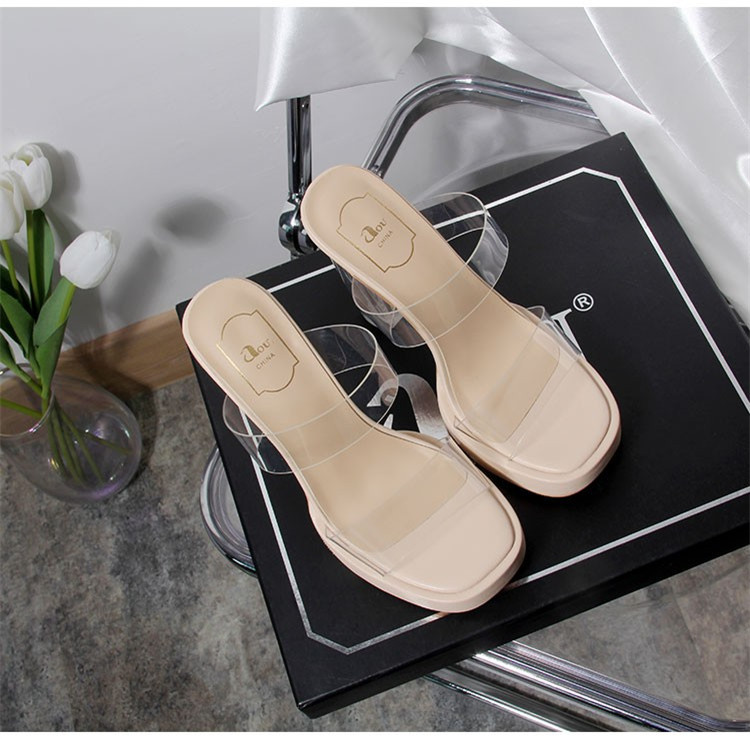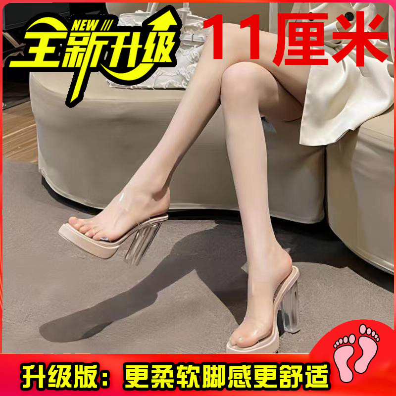 여성용 하이힐 2024 여름 신상 방수 플랫폼 원라인 스트랩 두꺼운 굽 크리스탈 슬리퍼 여성용 샌들스토어 가기