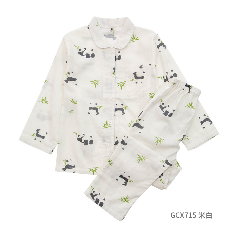 어린이 잠옷 부모-자식 순면 가을 중간 크기 어린이 팬더 사랑 소년을위한 새로운 긴팔 가정 옷 여아 잠옷스토어 가기