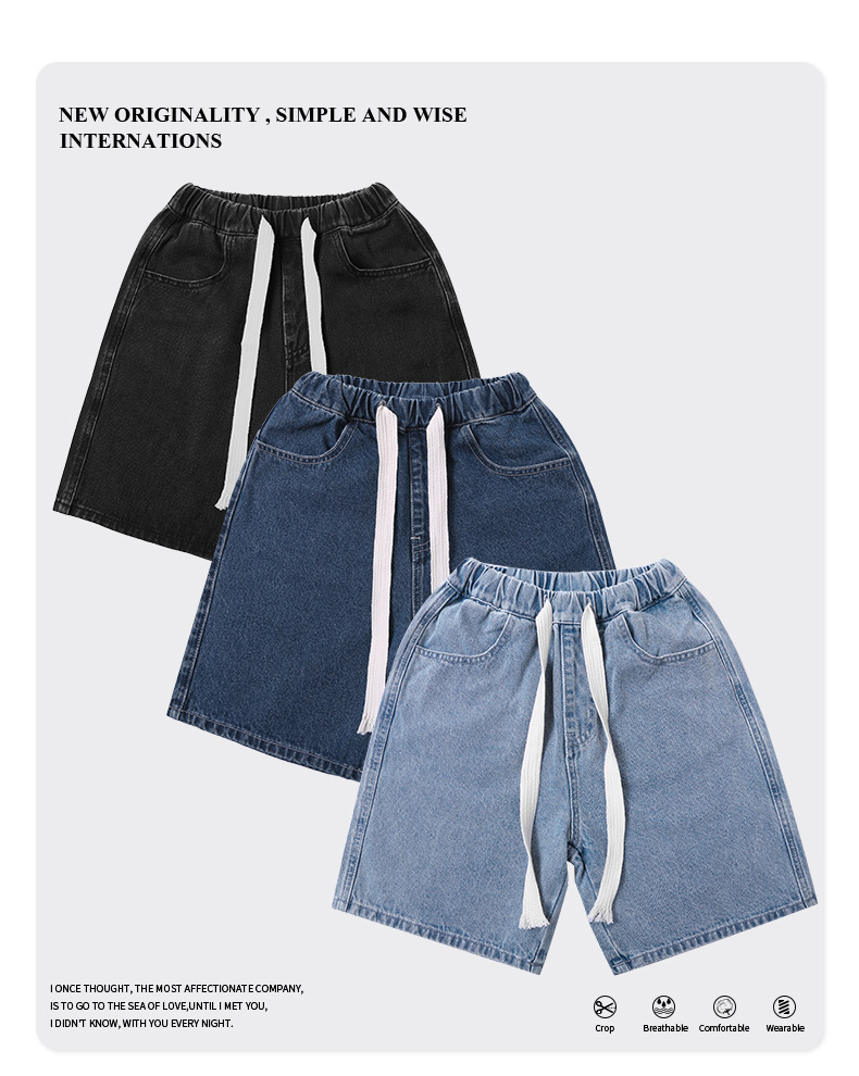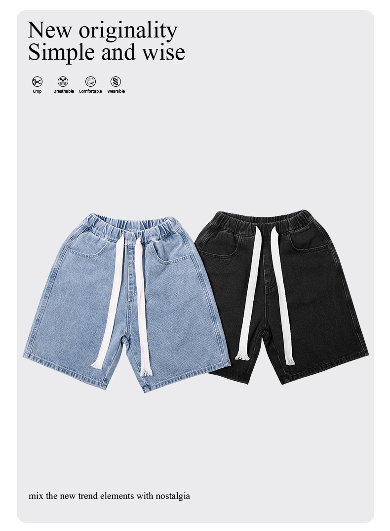 소년 청바지 하이 스트리트 아동 여름 바지 2025 새로운 중대형 아동 여름 다용도 데님 반바지 트렌드
