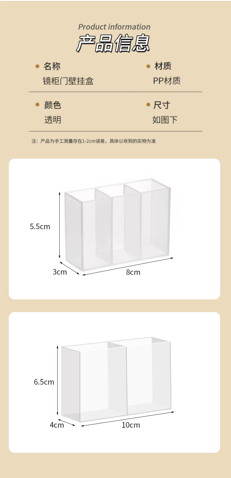 반투명 펀치 프리 3 패널 눈썹 펜 립스틱 화장품 브러쉬 작은 물건 벽걸이 마감 보관함 크로스 보더스토어 가기