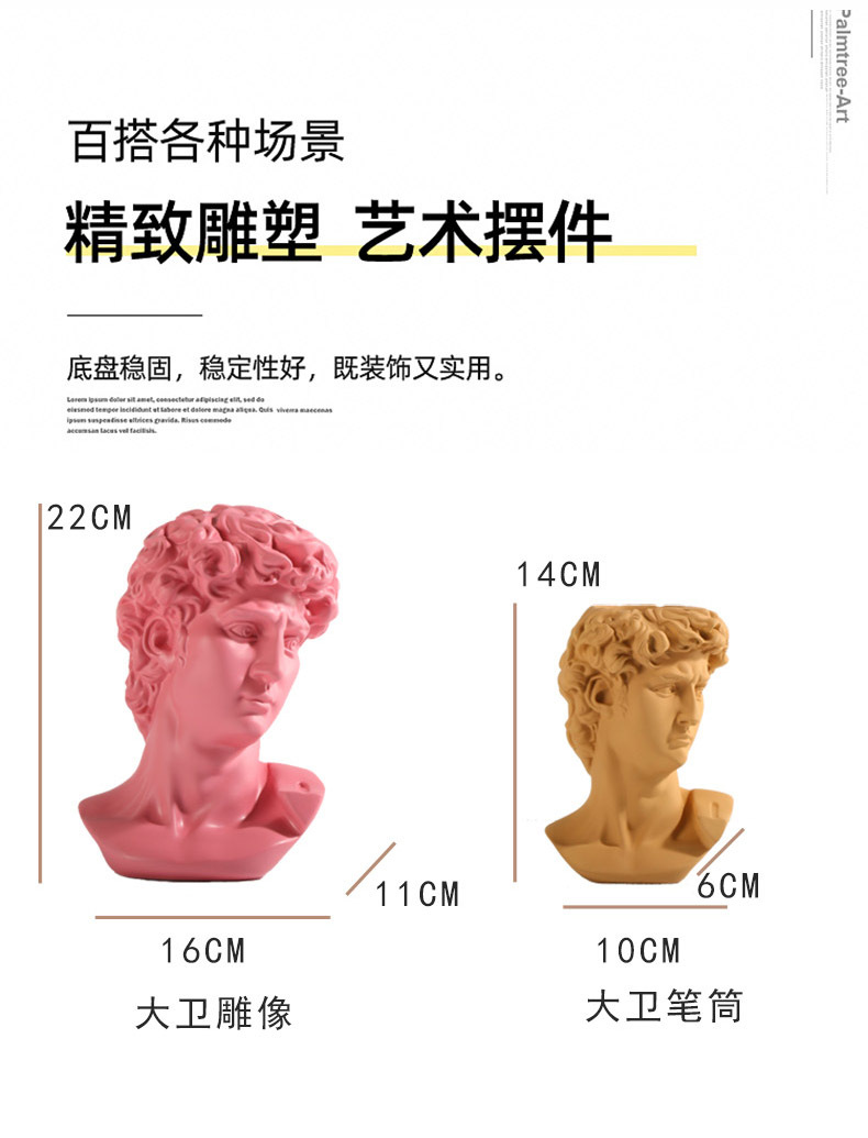 국경 간 유럽식 데이비드 펜 홀더 꽃병 화장품 브러시 장식품 모조 석고 조각 미술 용품 스케치 거실 장식