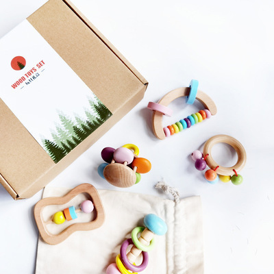 아기 몬테소리 나무 딸랑이 세트 장난감 남자와 여자의 아이들의 손 크랭킹 손 눈 조정 단단한 나무 교육 보조스토어 가기