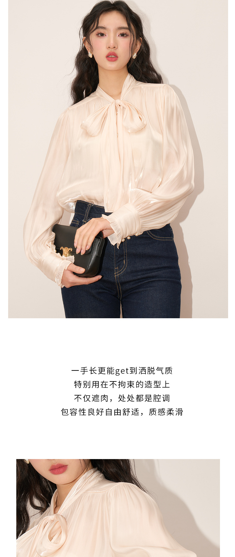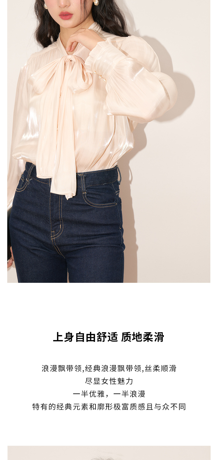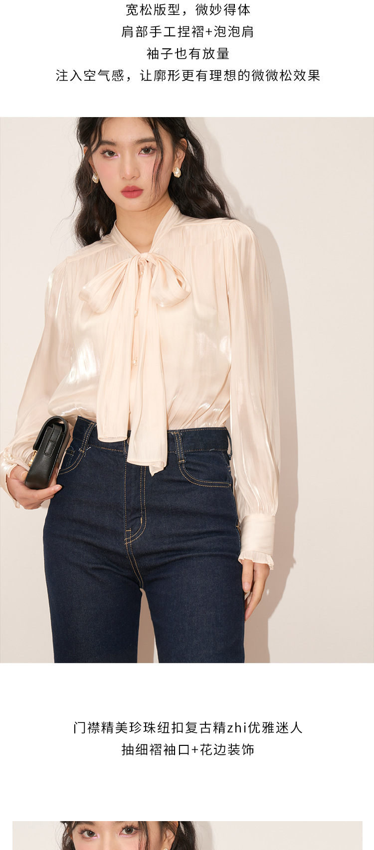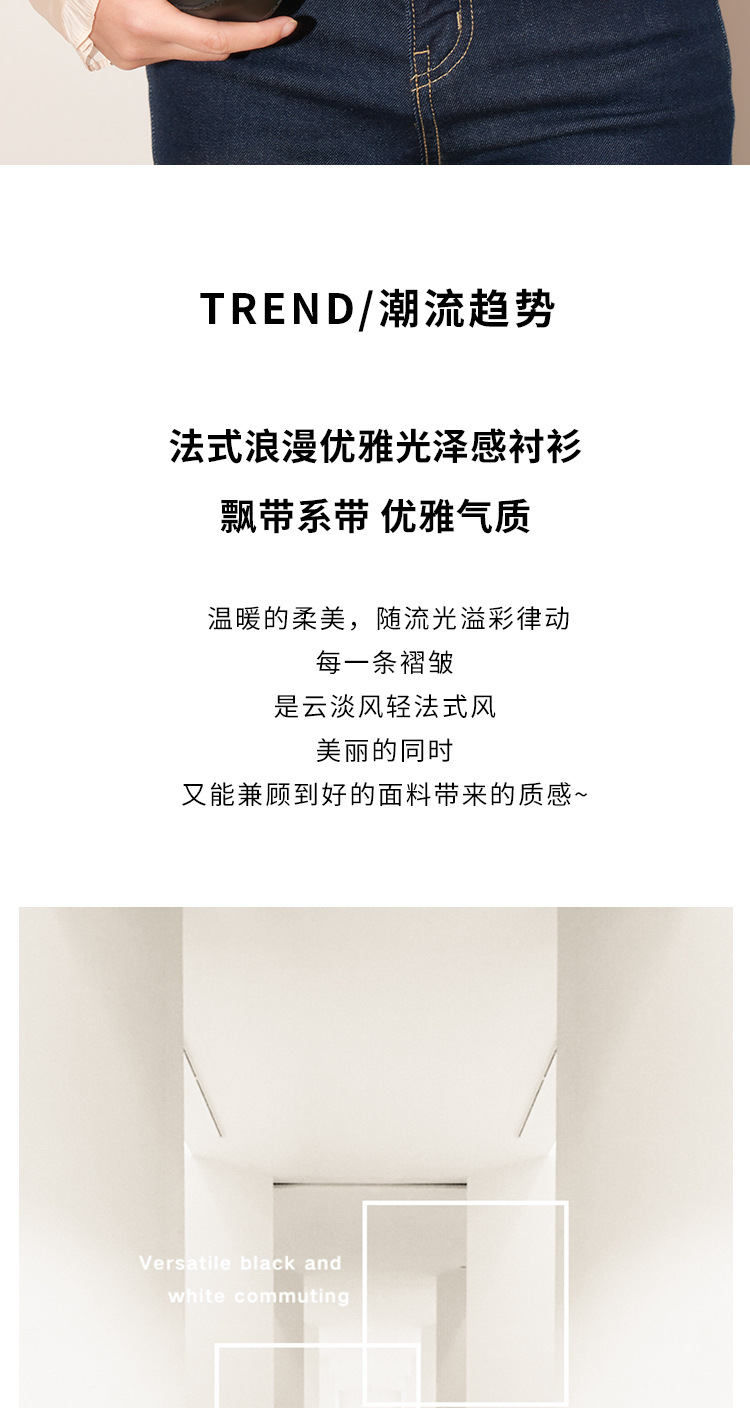 【盛都】봄 신상 프렌치 로맨틱 우아한 광택 리본 레이스업 출퇴근 캐주얼 셔츠스토어 가기
