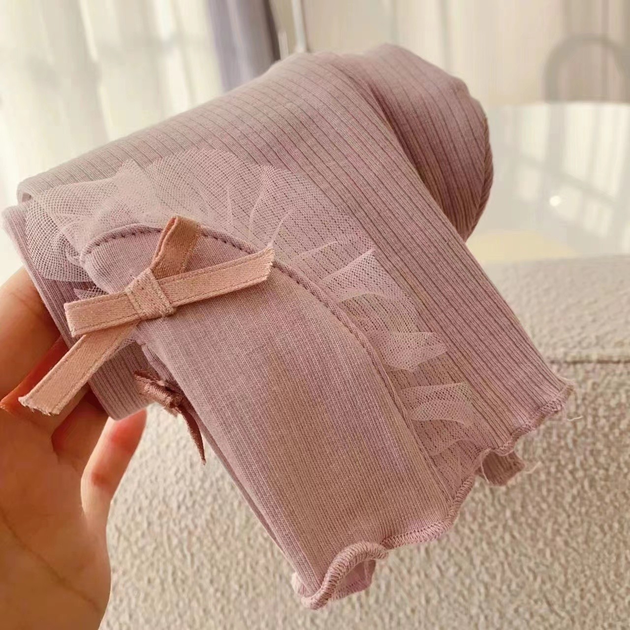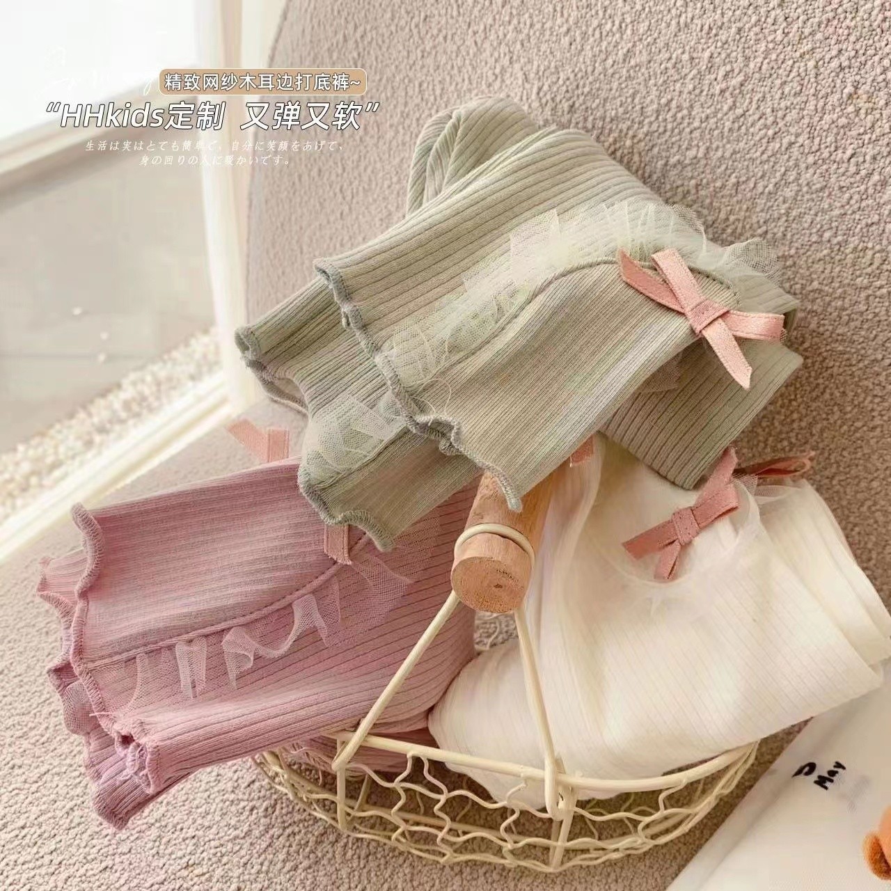 어린이 봄과 가을 새로운 레깅스 소녀 2024 봄과 가을 서양식 한국 스타일 나비 레이스 코튼 바지스토어 가기