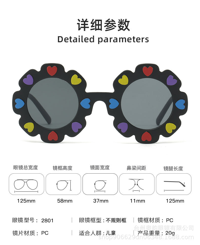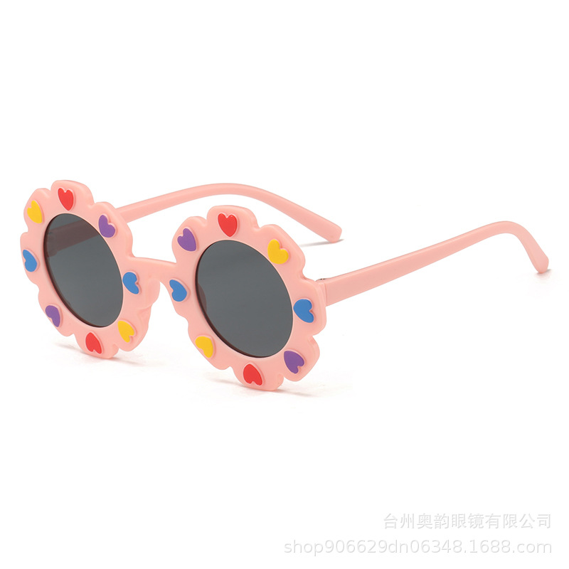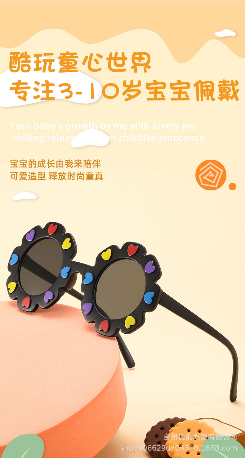 새로운 한국 스타일 귀여운 레인보우 사랑 어린이 선글라스 만화 Sweet in 스타일 남성과 여성의 라운드 프레임 아기 선글라스