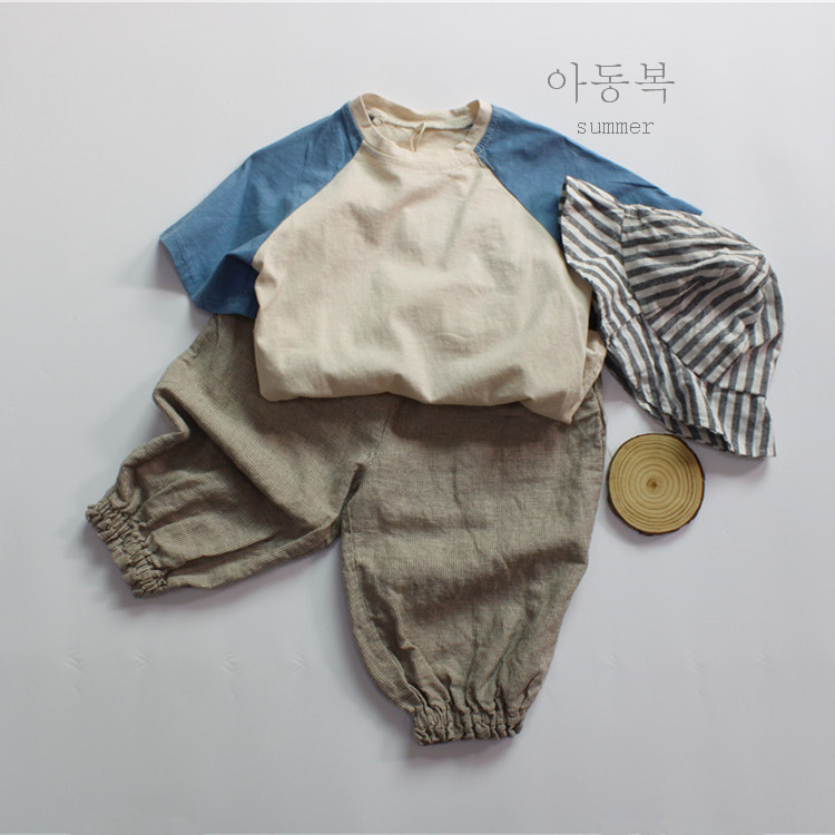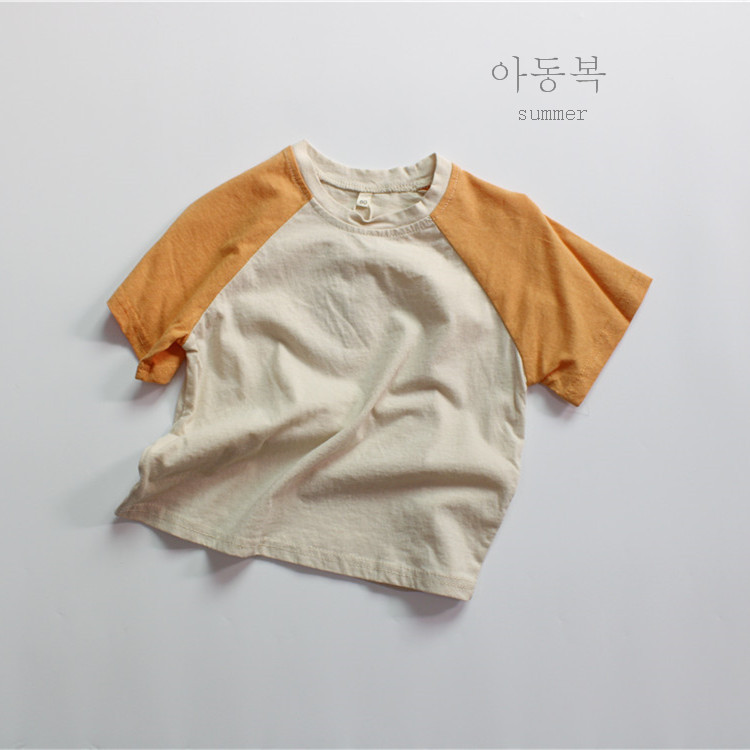 가을 소녀 바닥 셔츠 클래스 A 순수 코튼 티셔츠 소년 한국 스타일 느슨한 색상 차단 라운드 넥 아동상의 반팔 봄, 여름스토어 가기