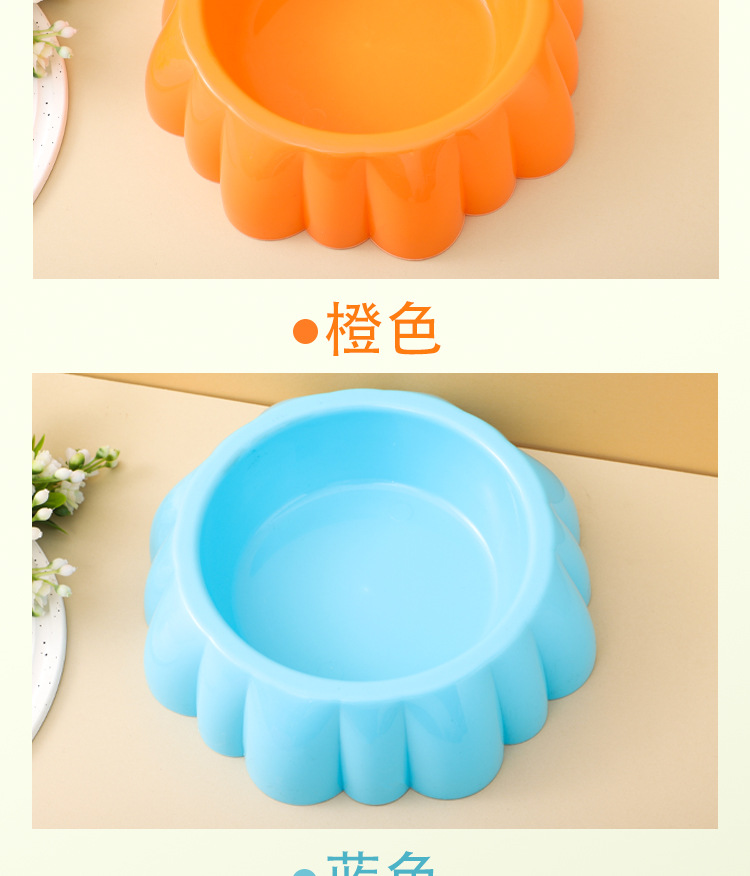 새로운 캔디 컬러 플라스틱 개 단일 그릇 꽃 중소 개 고양이 음식 그릇 꽃 음식 애완 동물 용품