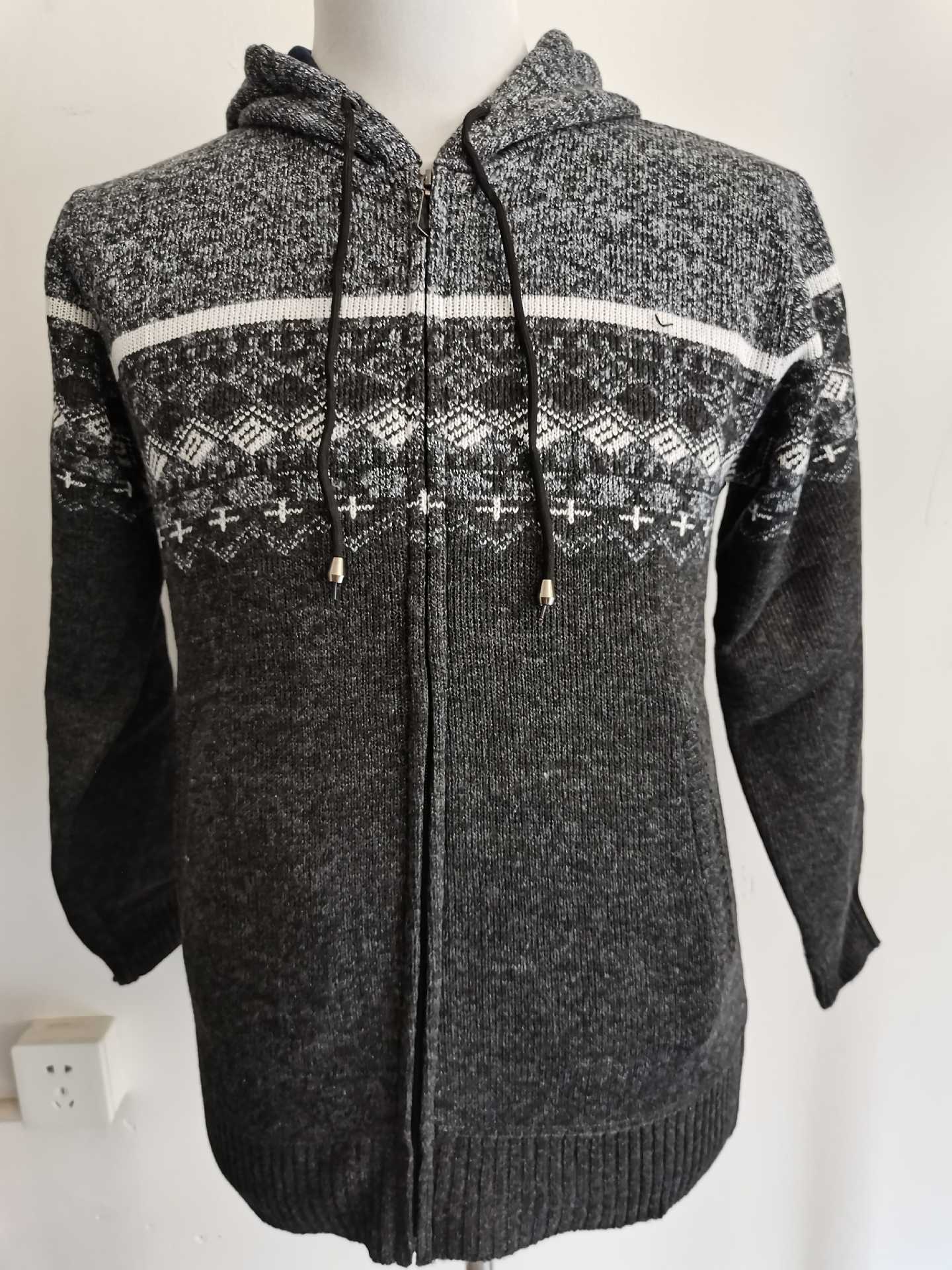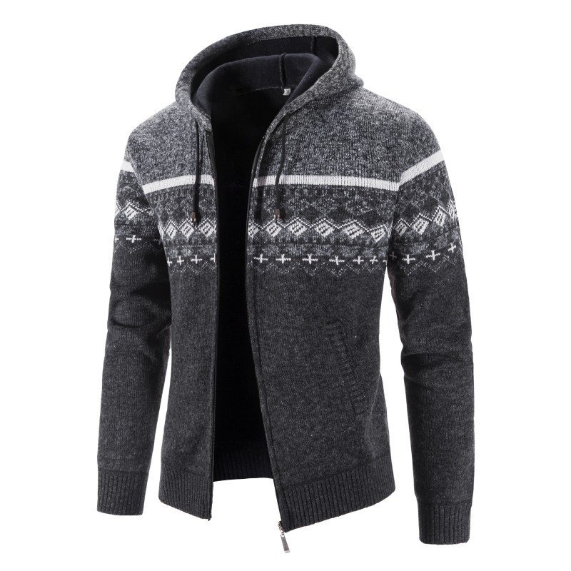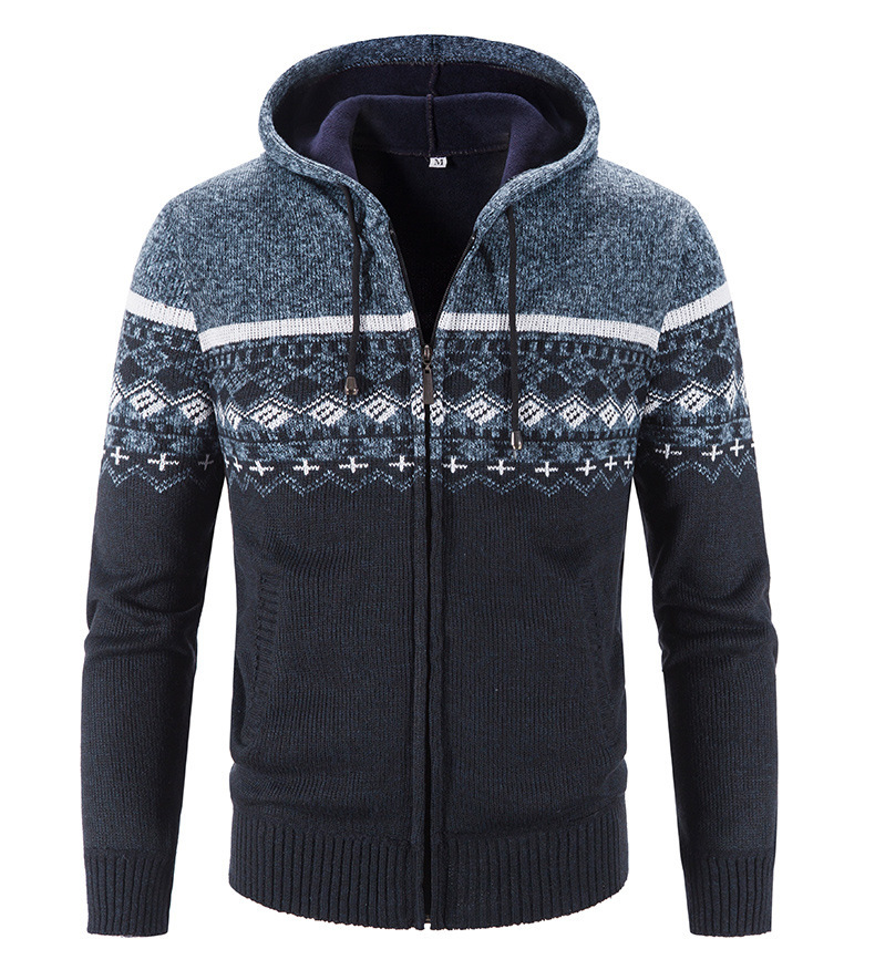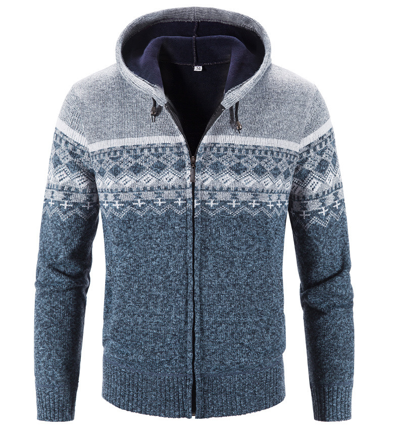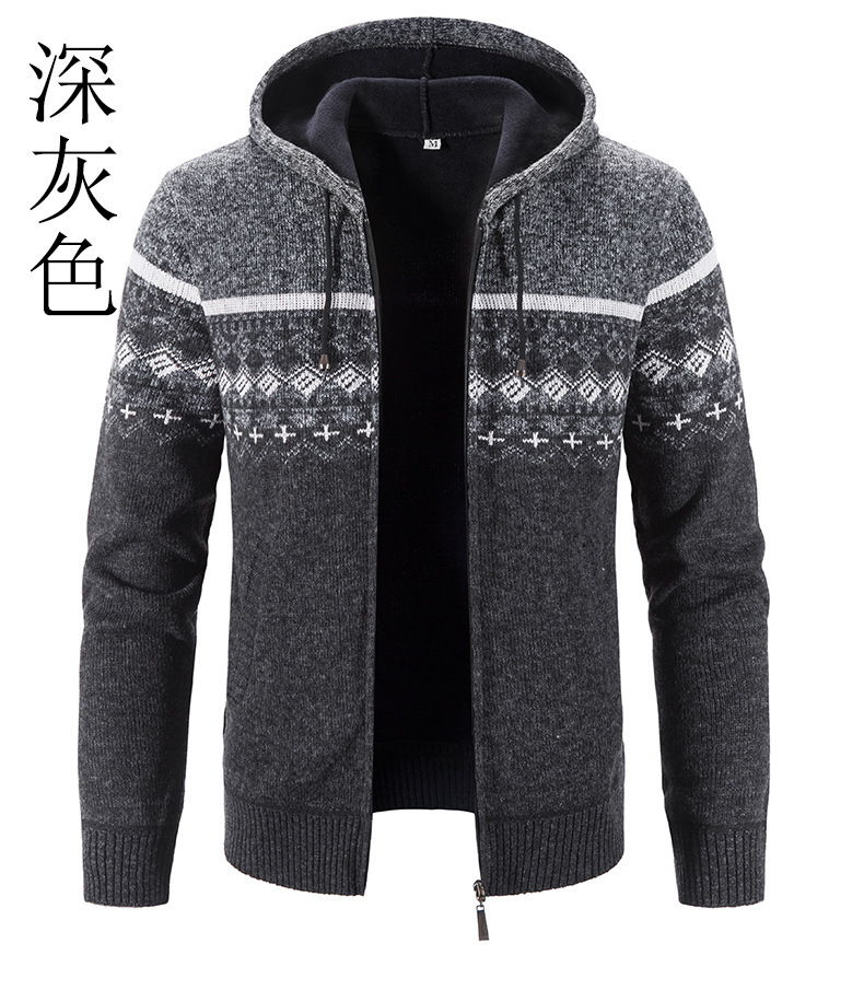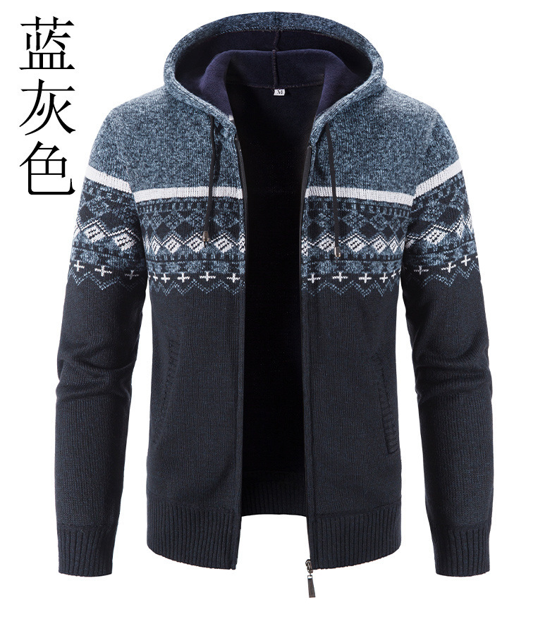새로운 스타일의 크로스보더 인기 상품, 빅사이즈 기모 안감 두꺼운 그라데이션 색상의 수출용 캐주얼 남성 니트 가디건스토어 가기
