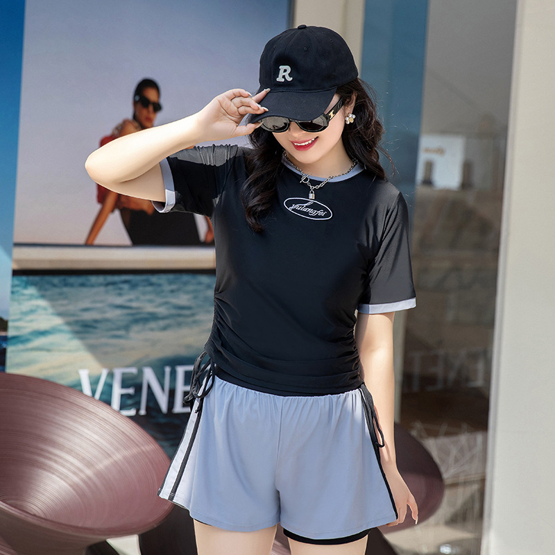 여성용 플러스 사이즈 수영복 여름 2025 신상 살 커버 및 슬리밍 보수적 복서 스플릿 학생 뚱뚱한 mm 플러스 온천 수영복