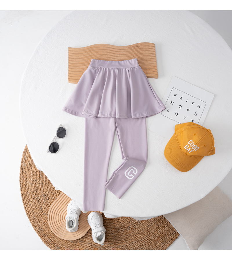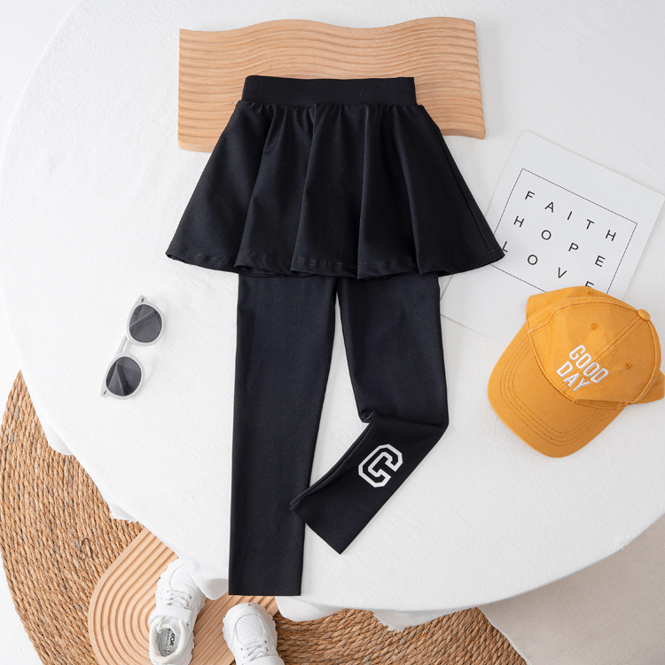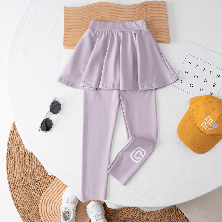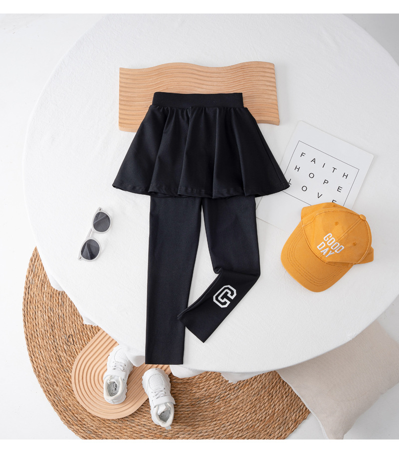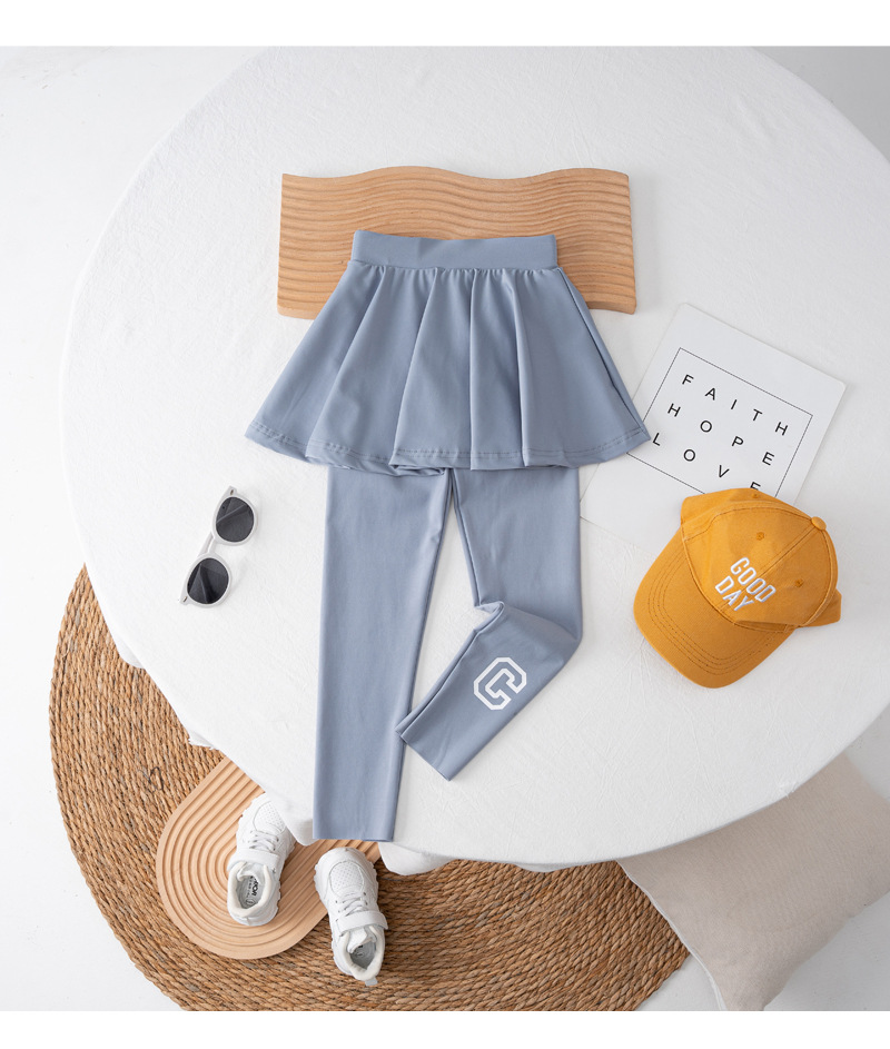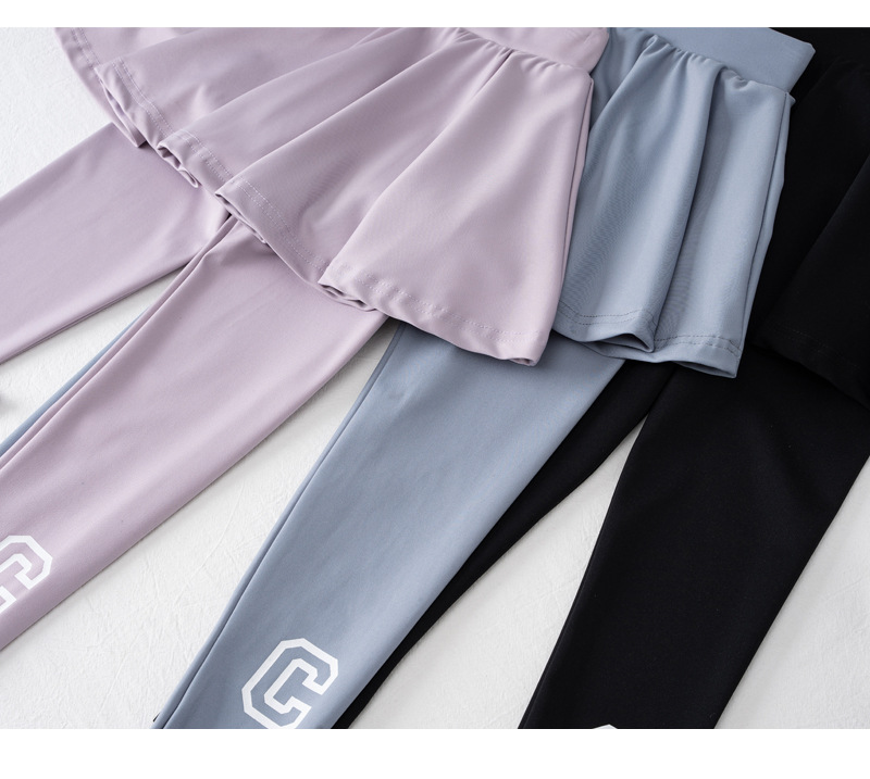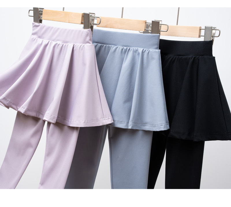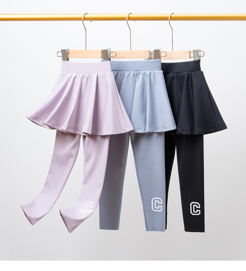 여자 치마바지 2024 봄과 가을 새로운 어린이 슬림 스트레치 상어 바지 가짜 투피스 요가 레깅스