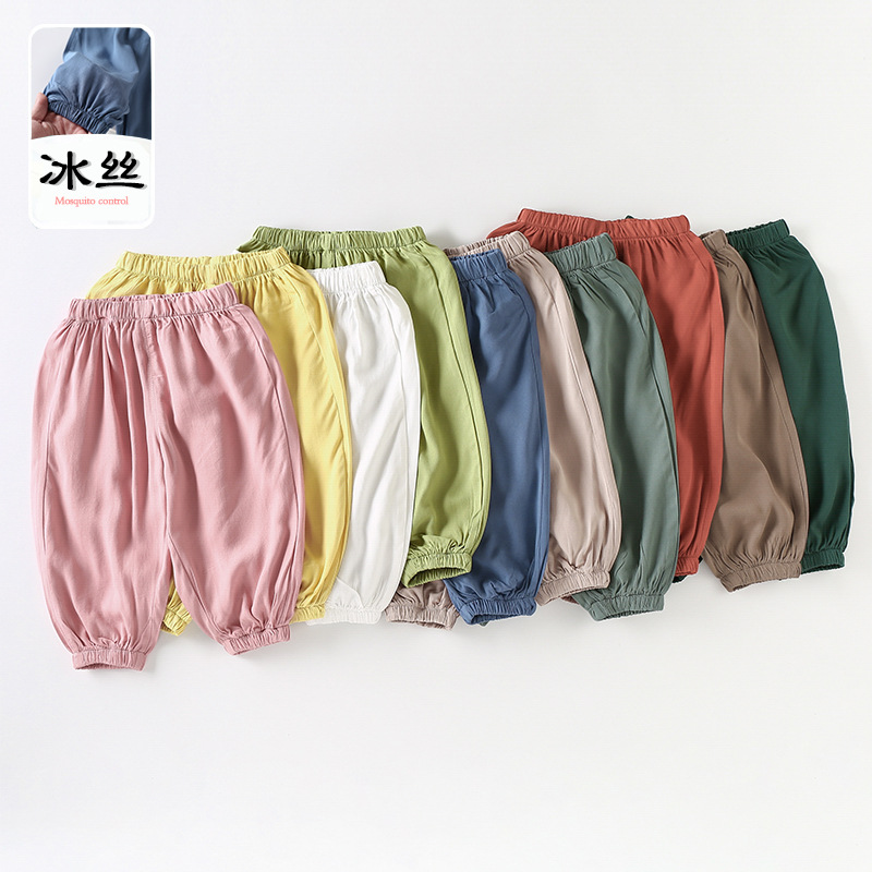 아기 모기 방지 바지 여름 얇은 소년 어린이 여름 아이스 실크 소녀 면 및 린넨 블루머 아기 바지 어린이스토어 가기