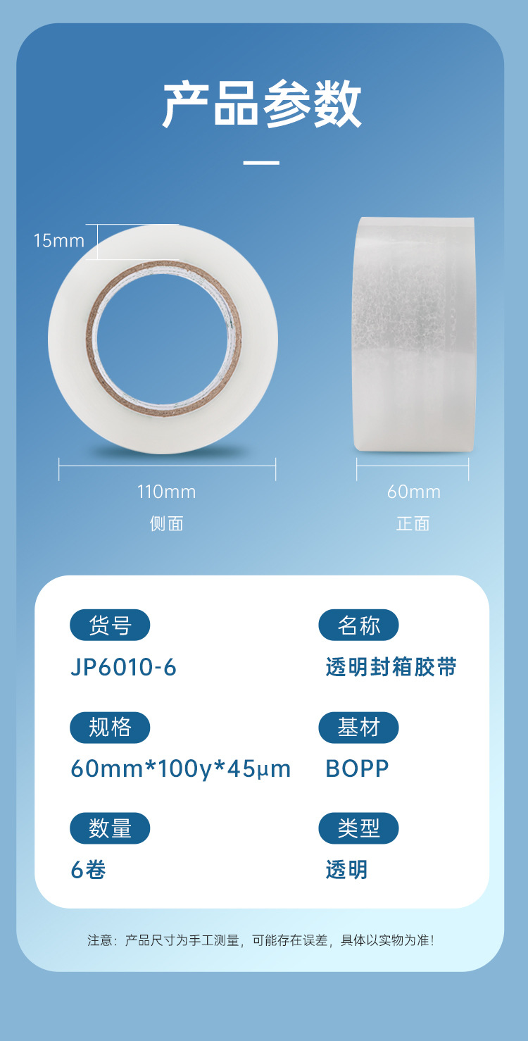 • 투명 45mm 폭 * 91.4 m 6 팩 JP4510-6