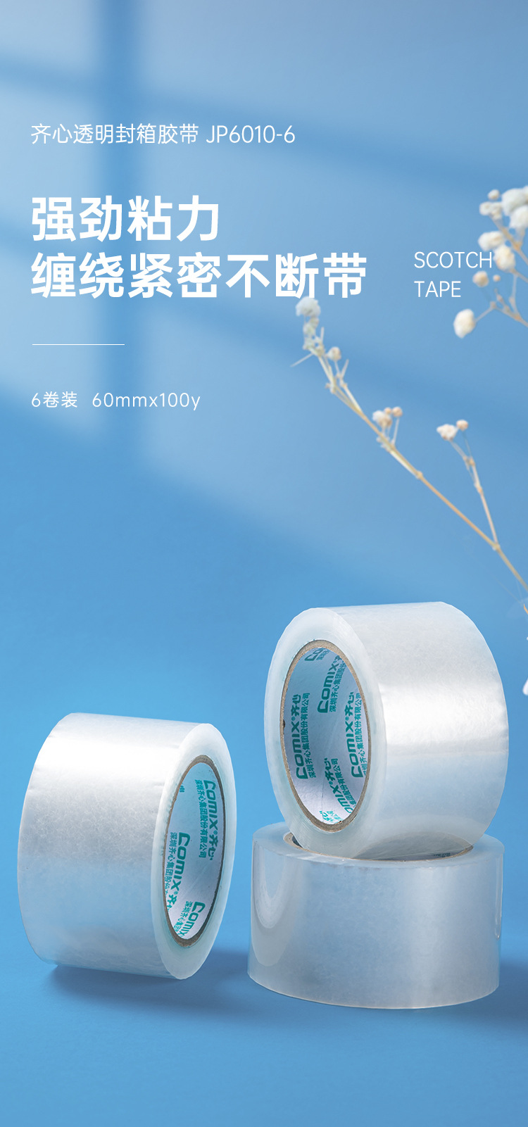 • 투명 60mm 폭 * 91.4 m 6 팩 JP6010-6