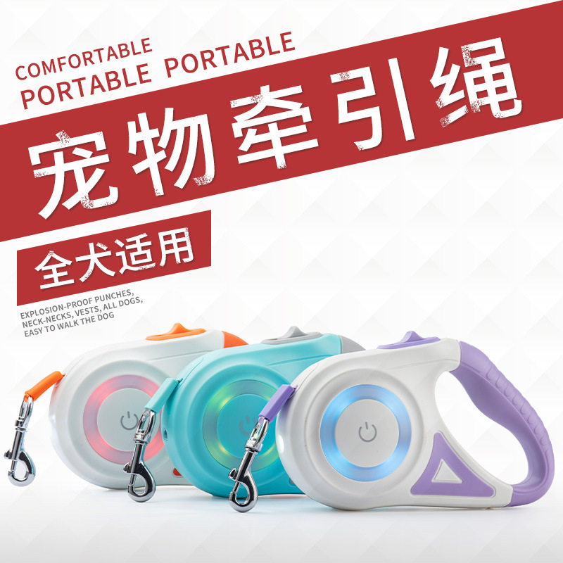 터치 LED 빛나는 애완 동물 가죽 끈 개 가죽 끈 자동 개폐식 가죽 끈 개 가죽 끈