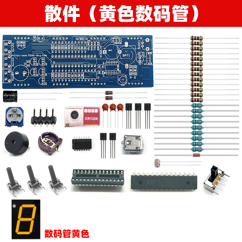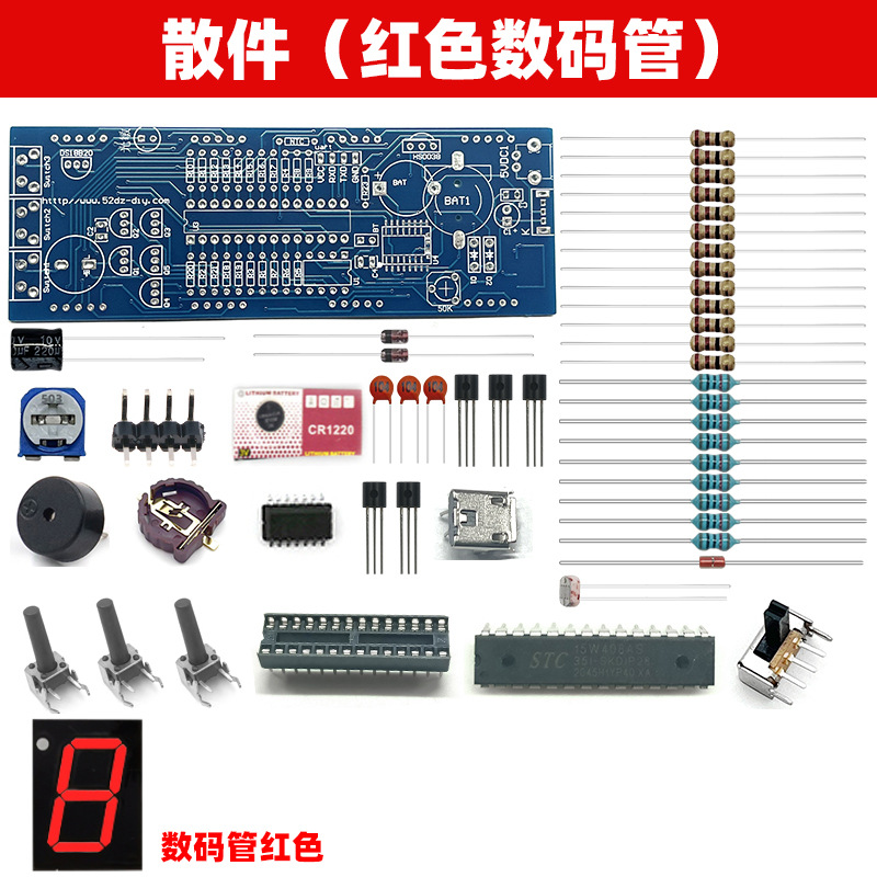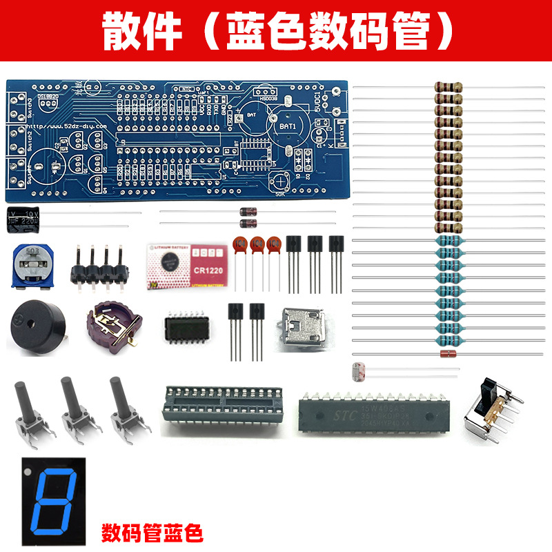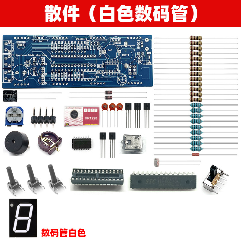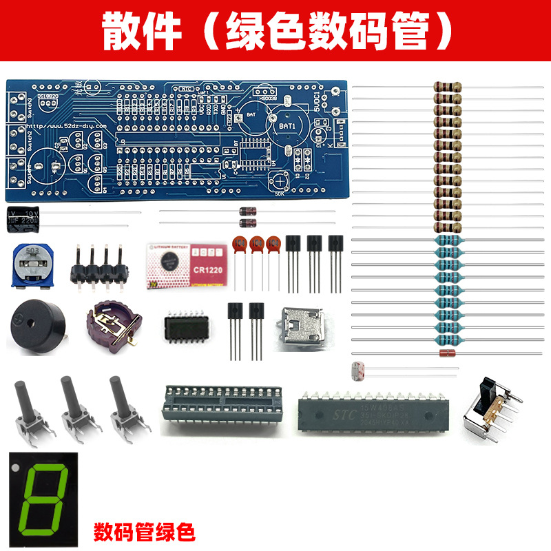 전자 디지털 시계 키트 51 단일 칩 마이크로 컴퓨터 음성 타이밍 디지털 튜브 시계 회로 기판 DIY 생산 부품스토어 가기