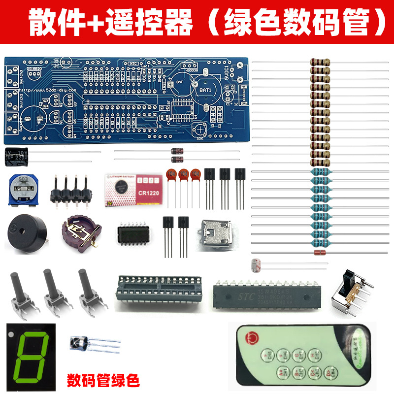 • 녹색 디지털 튜브 부품 + 리모콘 (전원 코드 제공)