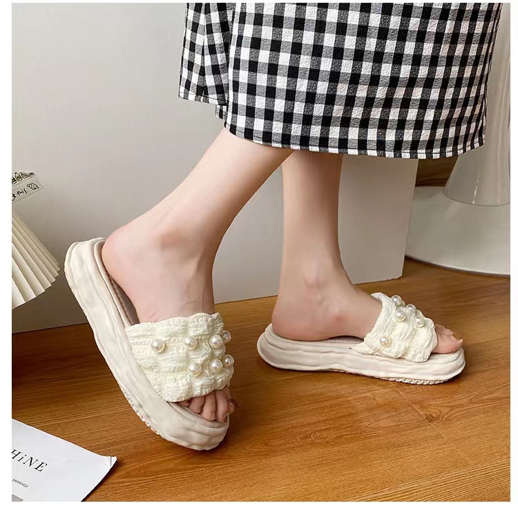새로운 패션 슬리퍼 여성 여름 요정 스타일 달콤한 스타일 모든 매치 머핀 두꺼운 밑창 천 진주 신발 해변 멋진스토어 가기