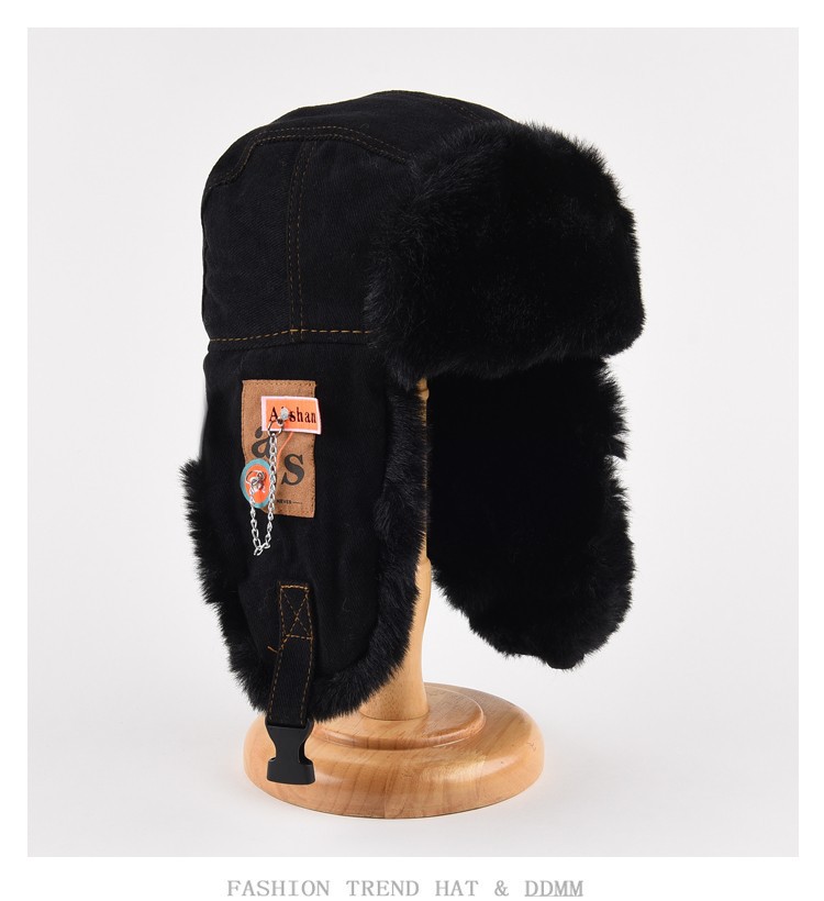 겨울 두꺼운 레이 펑 모자 남자와 여자의 습기 방풍 따뜻한 귀 보호 승마 모자 봉제 포장 천 체인 면화 모자 교차 테두리