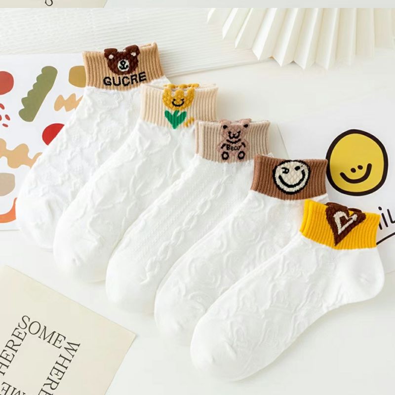양말 여성용 면 짧은 양말 얕은 입 봄과 여름 귀여운 일본식 만화 중간 짧은 양말 트렌디 한 흰색 보트 양말스토어 가기