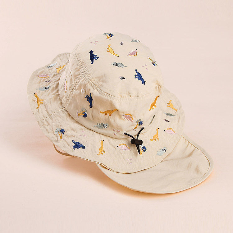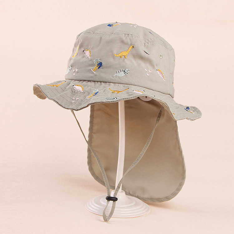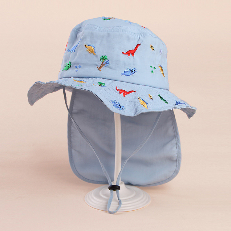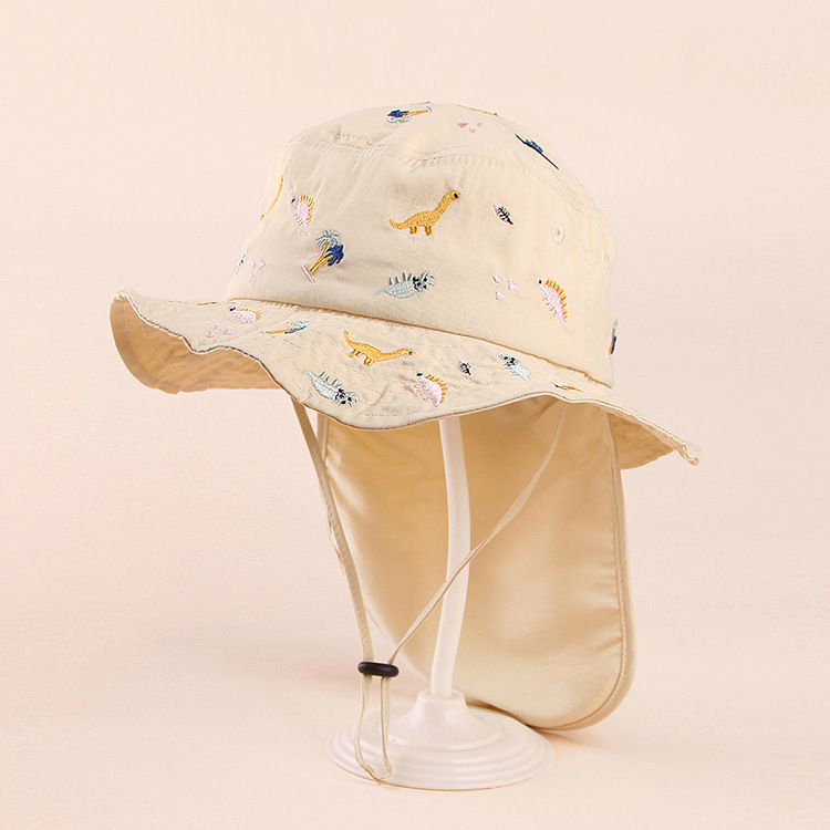 봄과 여름 2023 소년과 소녀를위한 새로운 자수 공룡 어린이 모자 차양 태양 모자 2-6 세 아기