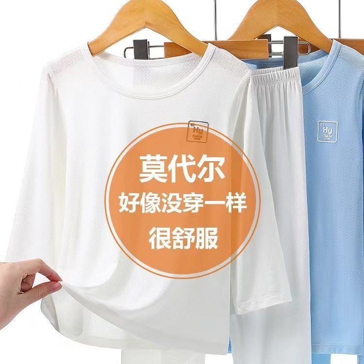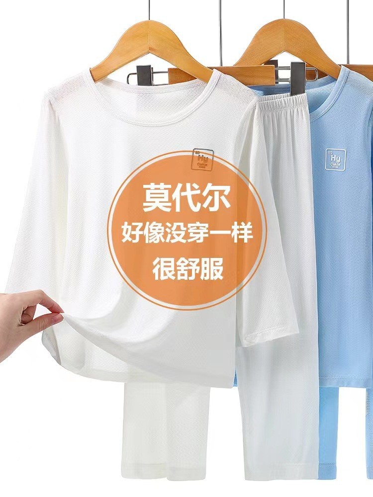 여름 어린이 잠옷 Artemisia 물결 모양의 자카드 홈 세트 자른 소매 자른 바지 소년 아기 에어컨 세트스토어 가기