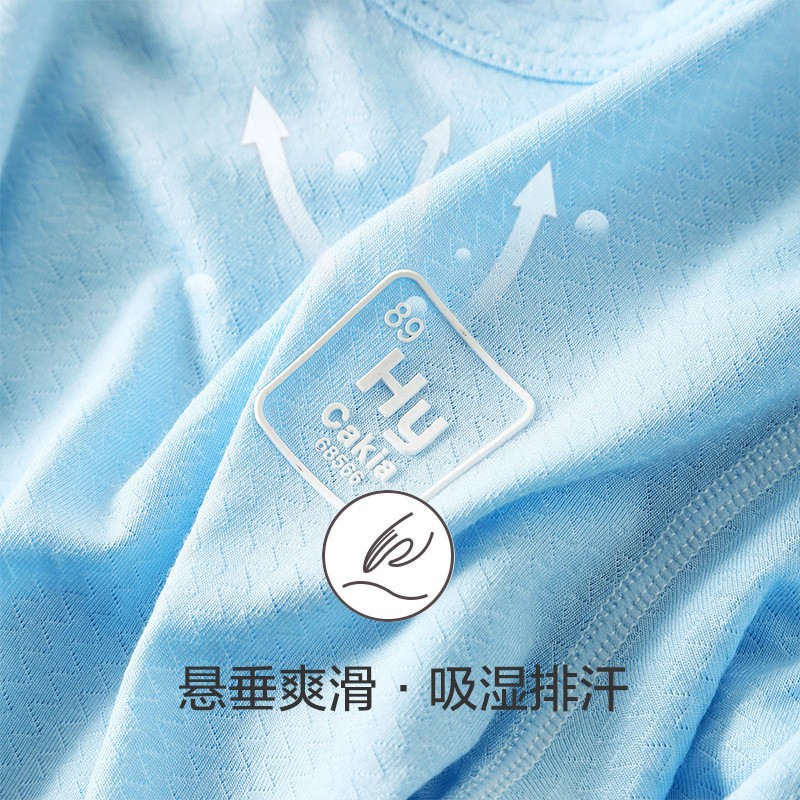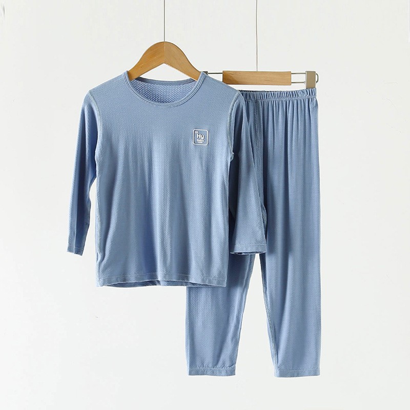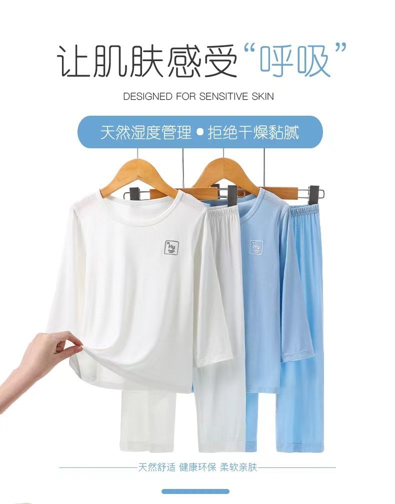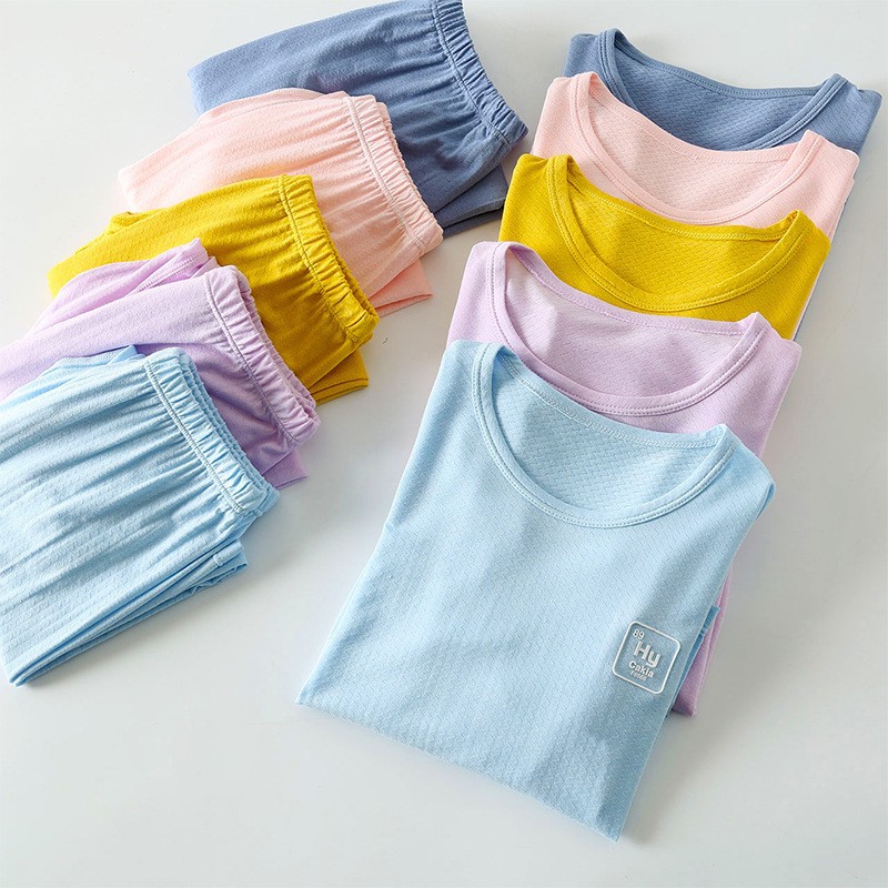 여름 어린이 잠옷 Artemisia 물결 모양의 자카드 홈 세트 자른 소매 자른 바지 소년 아기 에어컨 세트