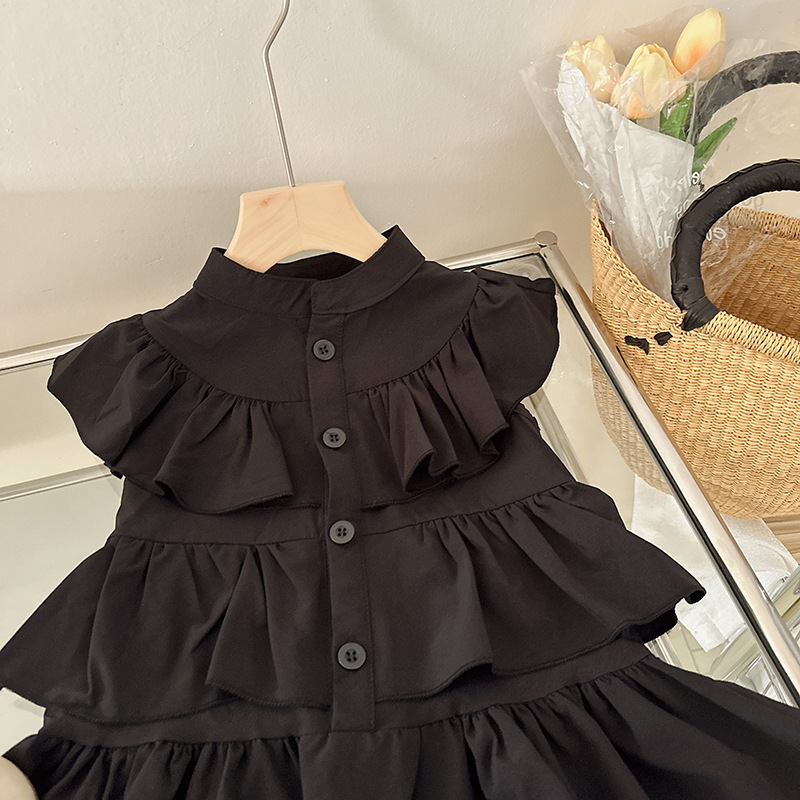 여자 조끼 치마 검정 2023 여름 새로운 어린이 서양 스타일 아기 프릴 원피스 케이크 치마 38175