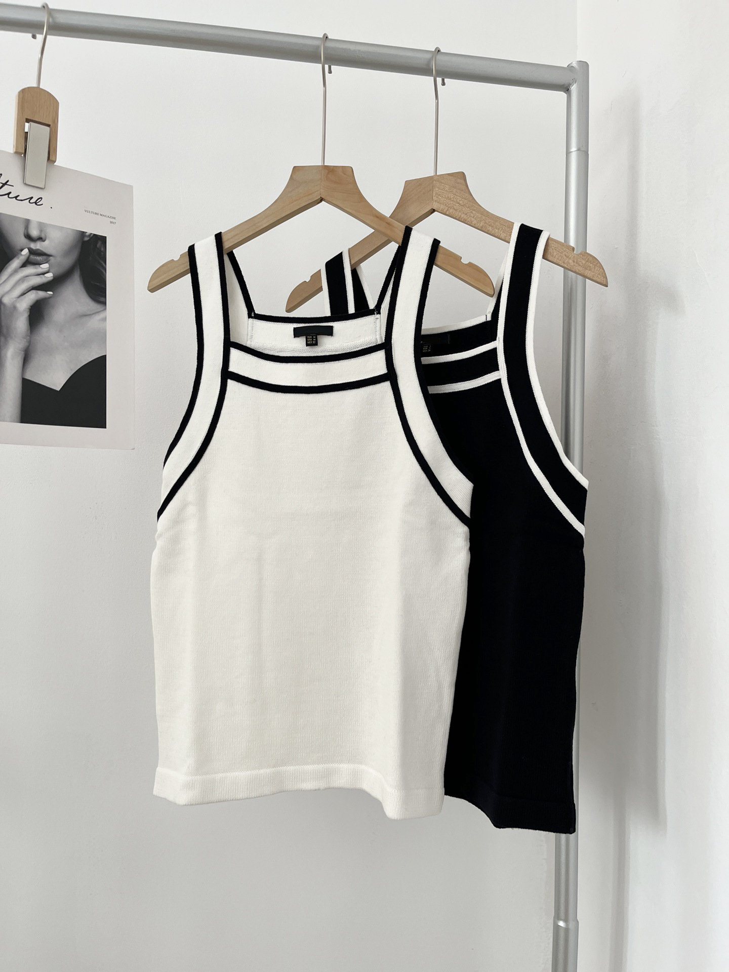 Md 스타일 여성 의류 봄과 가을 새로운 심플 올 매치 통근 스택웨어 유행 흑백 스티치 니트 캐미솔스토어 가기