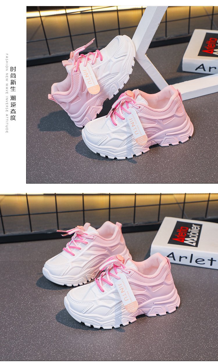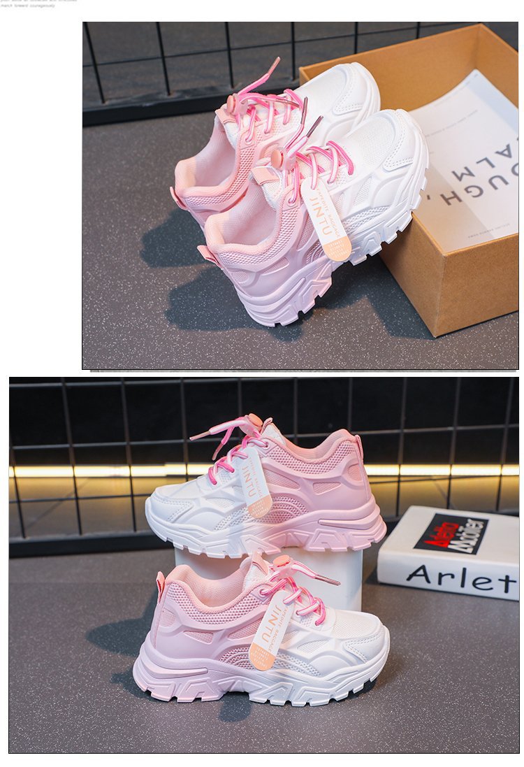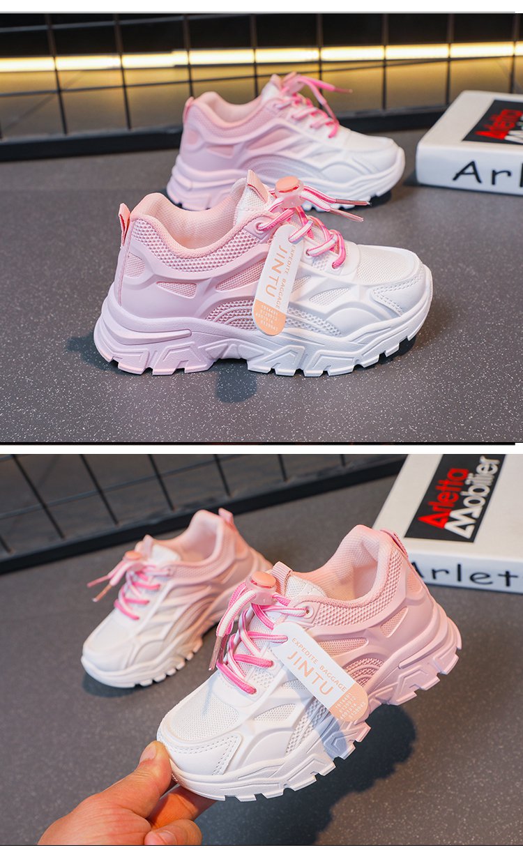 여자 운동화 통기성 2025 여름 새로운 한국어 스타일 어린이 메쉬 신발 흰색 신발 여학생 운동화 부드러운 바닥스토어 가기